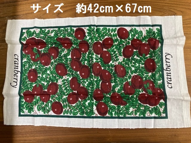クランベリー柄★ティータオル★未使用品 テーブルリネン 果実 フルーツ 赤い実