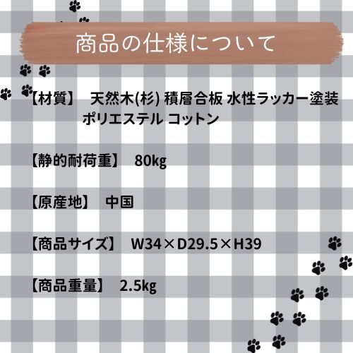 ![]() ペット用スツール PETSTOOL 犬 猫 チェックB 商品の仕様について 【材質】天然木(杉) 積層合板 水性ラッカー塗装 ポリエステル コットン 【静的耐荷重】80kg 【原産地】中国 【商品サイズ】W34×D29.5×H39 【商品重量】2.5kg ※お使いのブラウザ・モニター等の使用状況により色目の見え方が異なる場合がございます。 ◇◆発送について◆◇