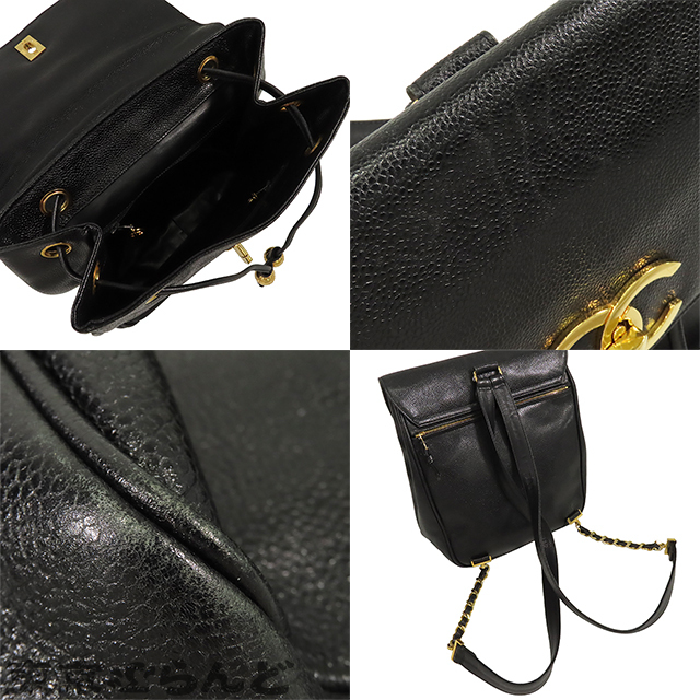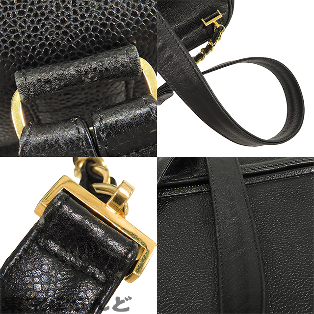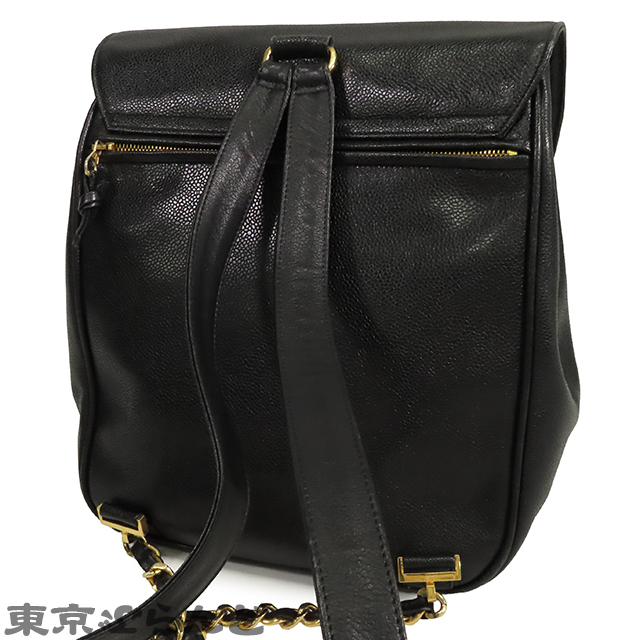 101807571 シャネル CHANEL ココボール デカココマーク リュック 3番台 黒 ゴールド金具 キャビアスキン チェーンショルダー デイパック