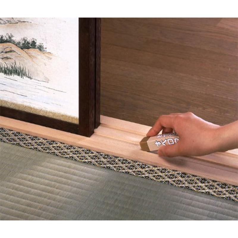 ・敷居の溝に沿って軽く滑らせるだけの、硬質ろうタイプの固形潤滑剤です。