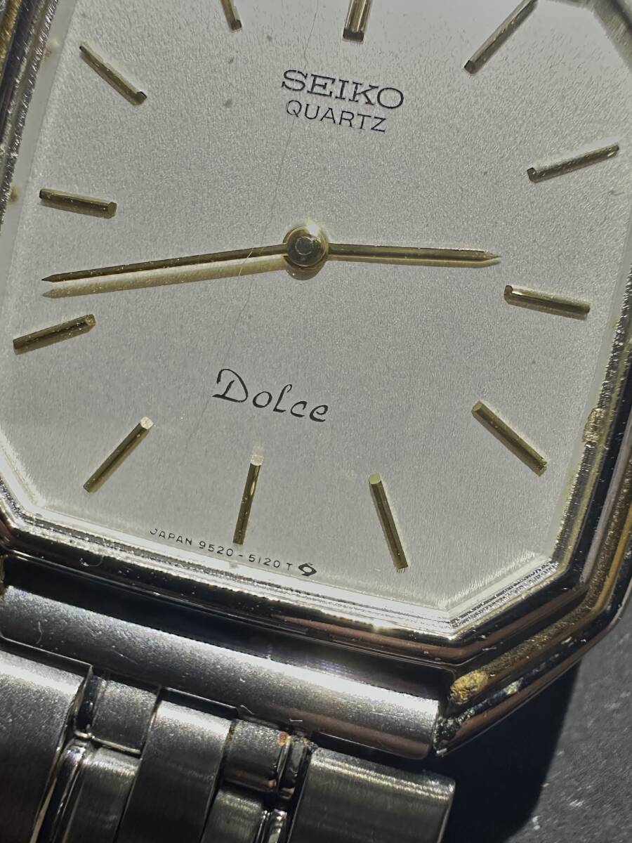 サイズ 縦:約3.5㎝ 横:約3.0㎝ 厚み:約0.5㎝ ベルト幅:約2.0㎝ カラー:シルバー他 ビンテージ感とデザイン性満載の SEIKO QUARTZ Dolce セイコー クオーツ ドルチェ 9520-5120 ビンテージ 腕時計で、ご使用にもコレクションにもおススメの一品です。 |