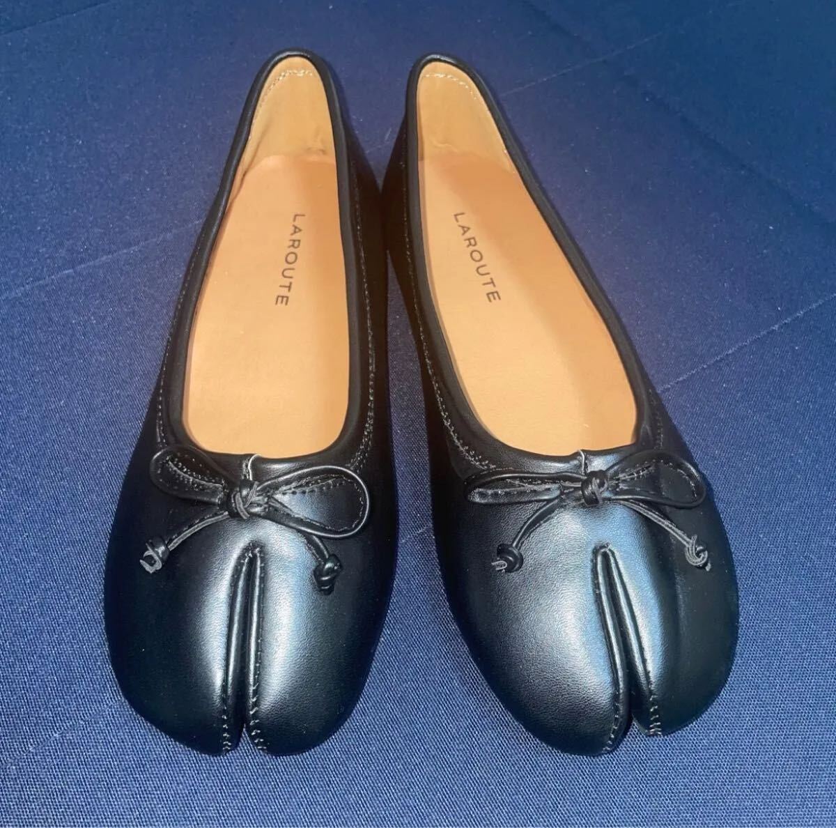 超美品★LAROUTEタビフラットパンプス★シューズ★ブラック★靴★M★23.5★バレーシューズ★黒