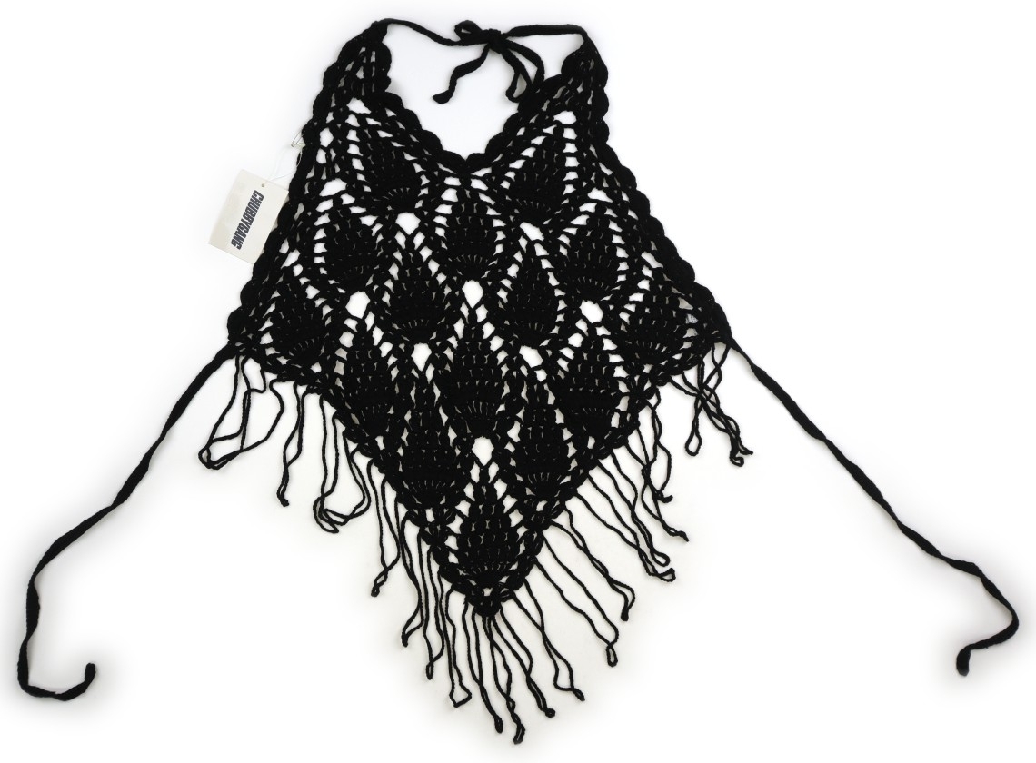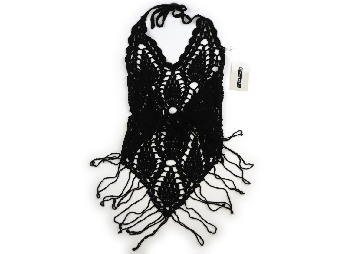 新品タグ付き。実際のサイズ表記はL(140-160cm)。綿素材のカギ編みニット地です。Tシャツに重ねるなどしていただけそうです。