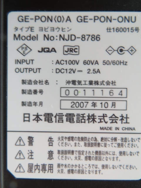 AD36463★日本電信電話★ACアダプター★GE-PON 0 A GE-PON-ONU NJD-8786★保証付!即決!