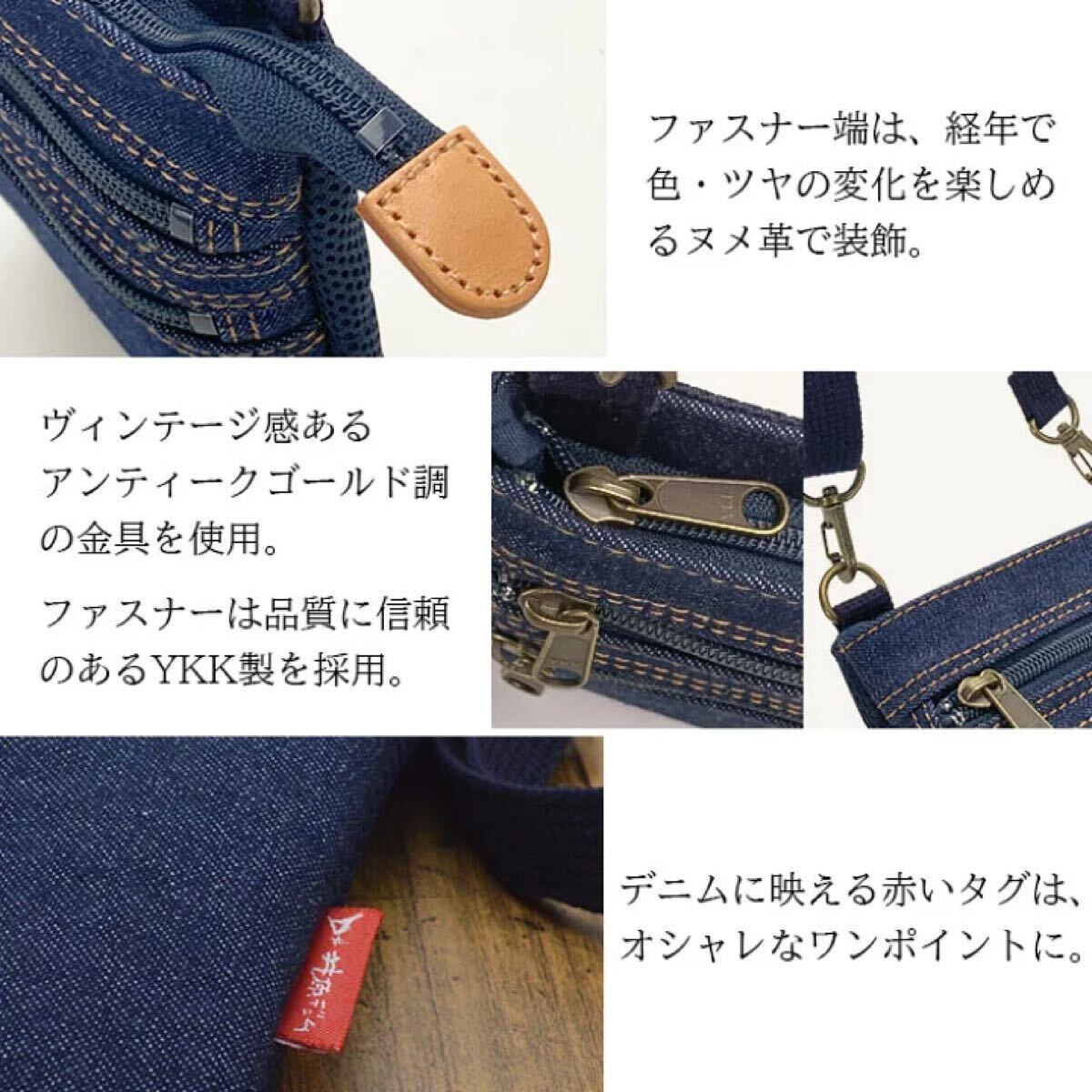 井原デニムミニショルダー サコッシュ 軽量 メンズ 岡山 日本製 豊岡製 斜めがけ 背面メッシュ 33791