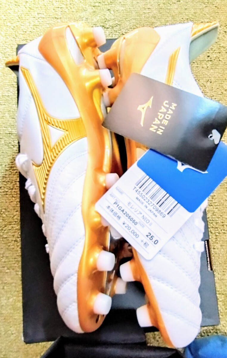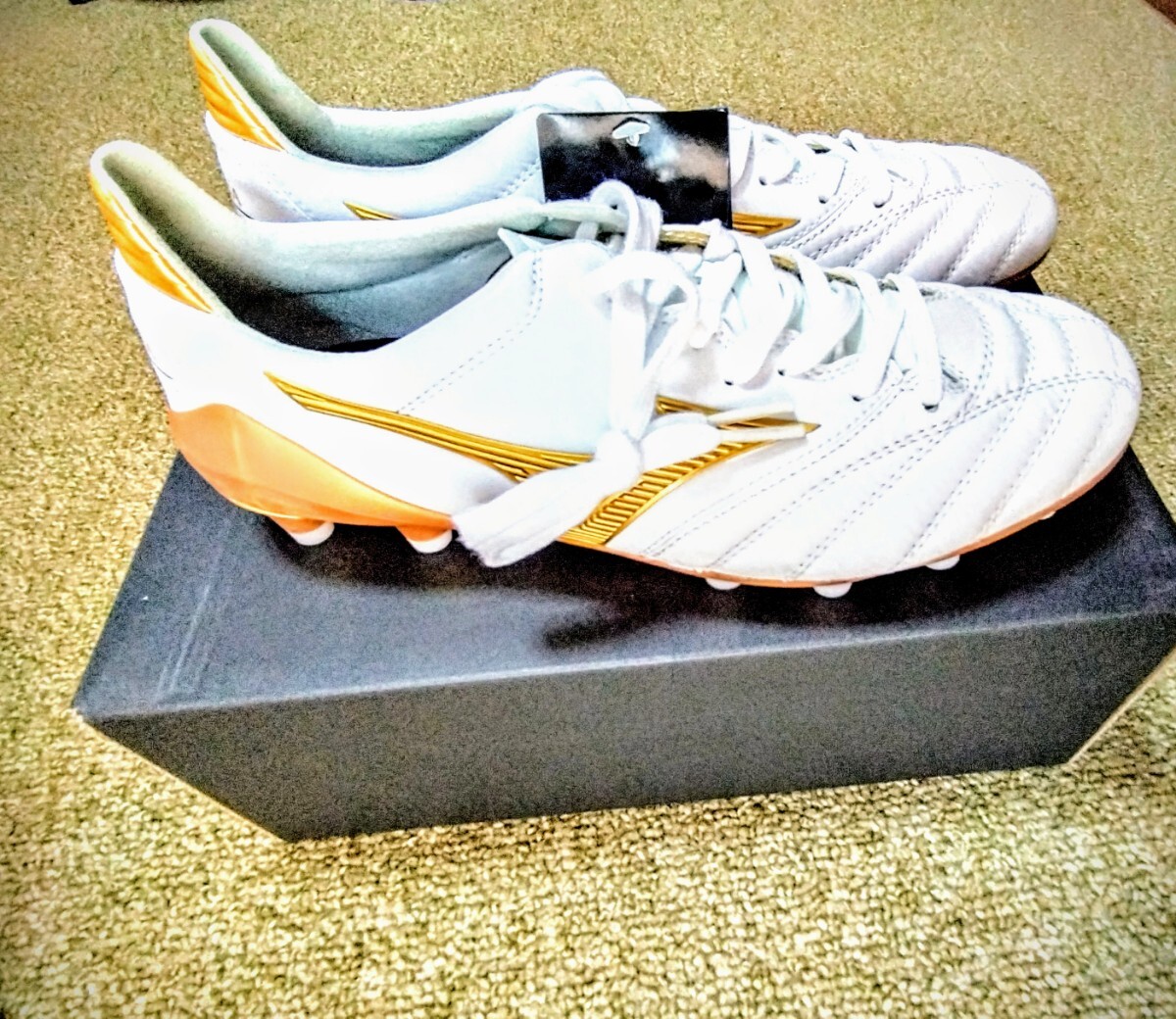 こちらは数年前に発売されたミズノのモレリネオ2の限定色(金白)の物になります。