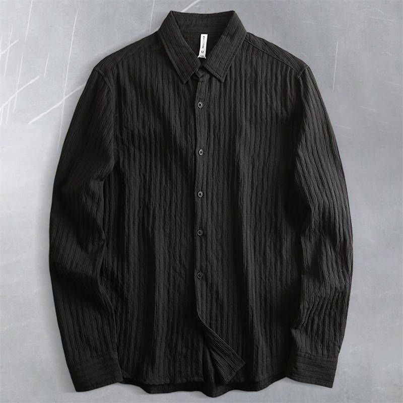 新品 楊柳 レーヨン混 長袖シャツ 通気 形態安定 通気性 春夏秋 メンズ ジャガード ビジカジコーデ イージーケア シャツ T2112-XL黒色