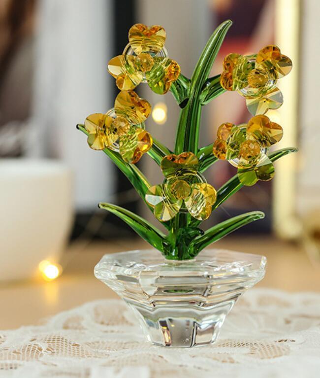 新品クリスタルガラスの水仙 きらきら輝く花置物 記念日 お祝い プレゼント ギフト 7色展開 インテリア 世話が要らない 雑貨 リビング 玄関