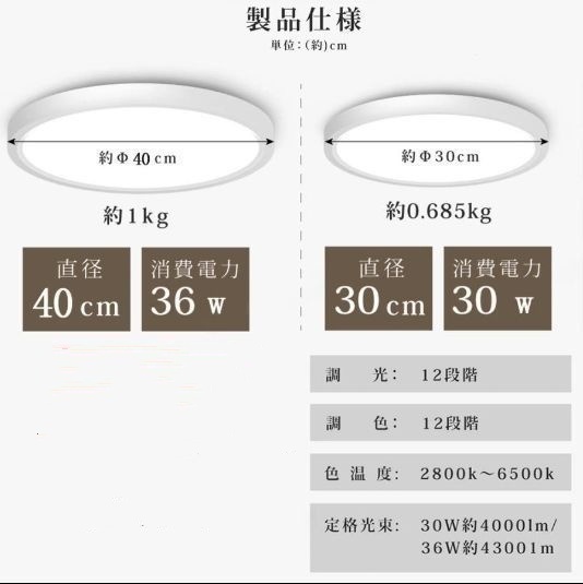 調色:3500k~6500k【電球色〜昼白色まで】