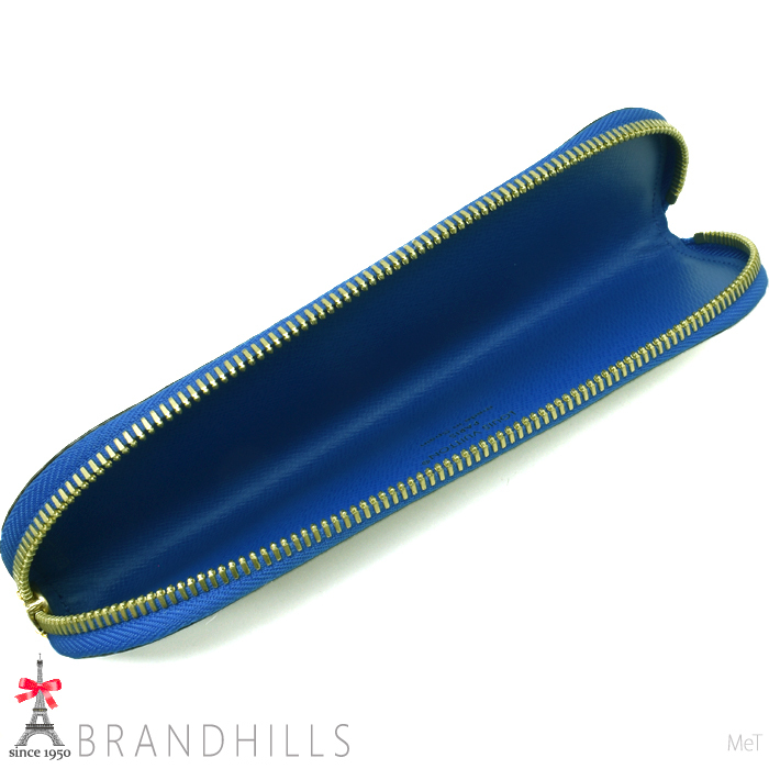 モノグラム・キャンバスと鮮やかなブルーカラーで仕上げたペンケース。