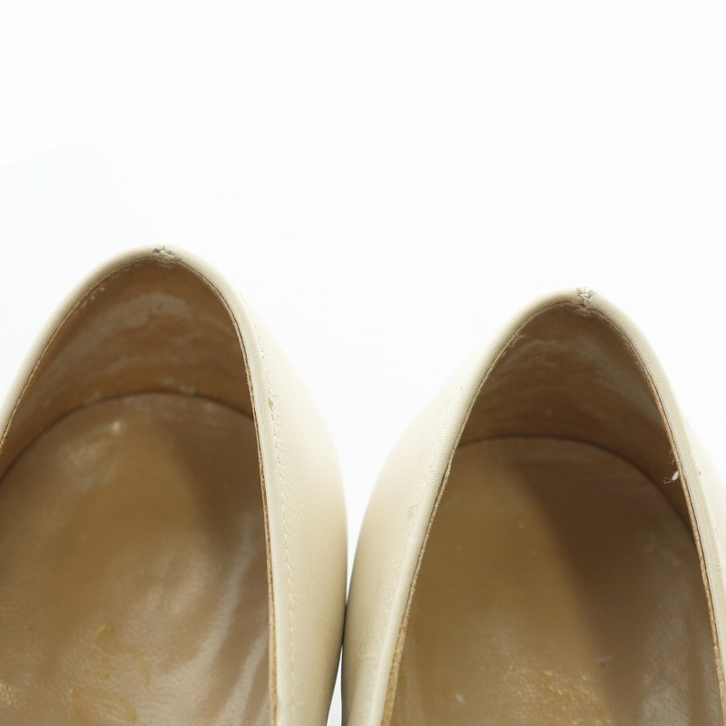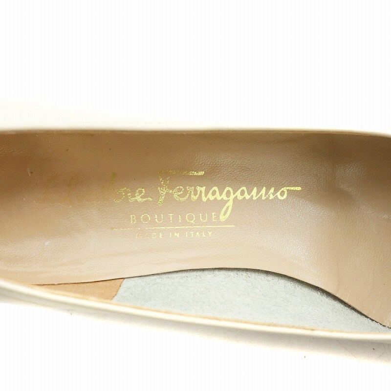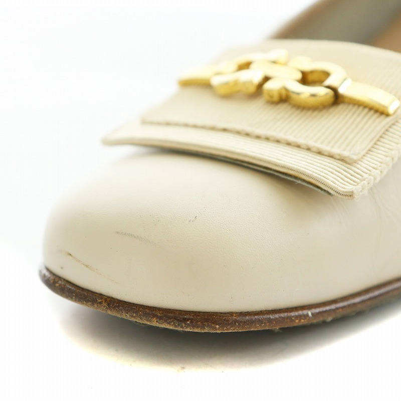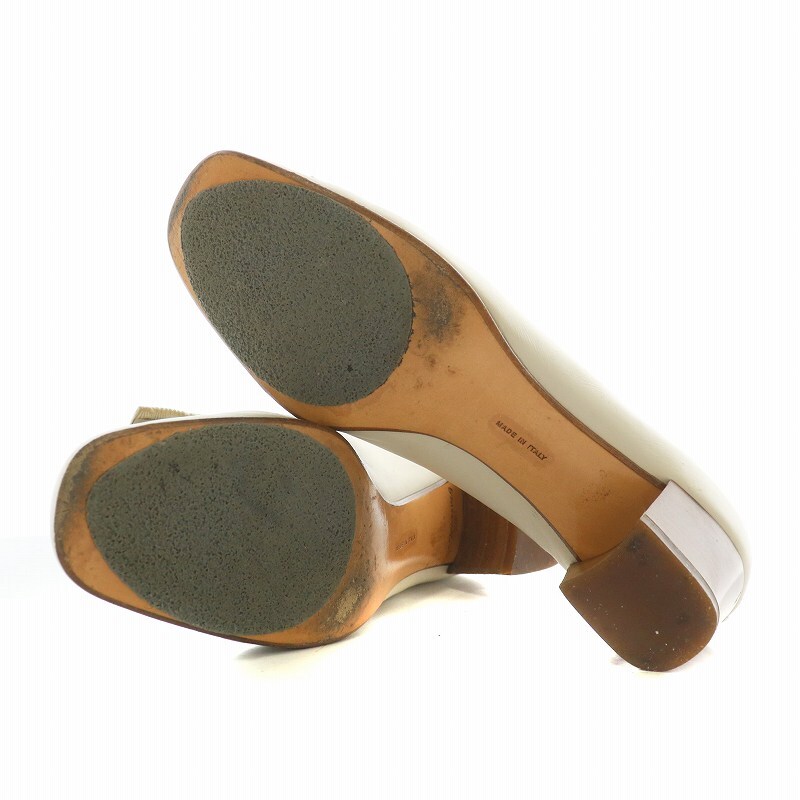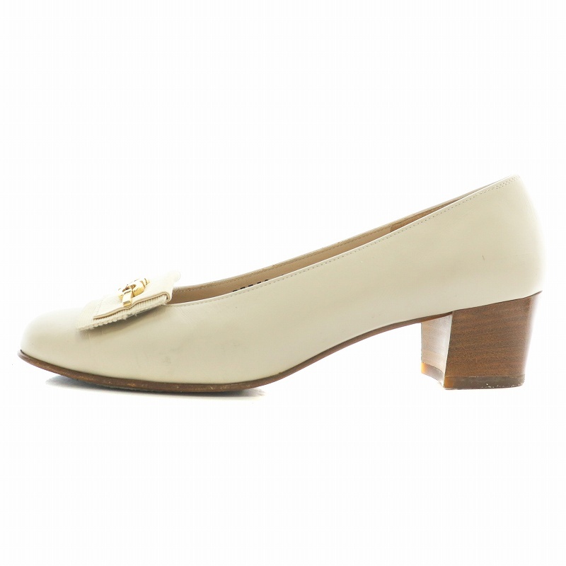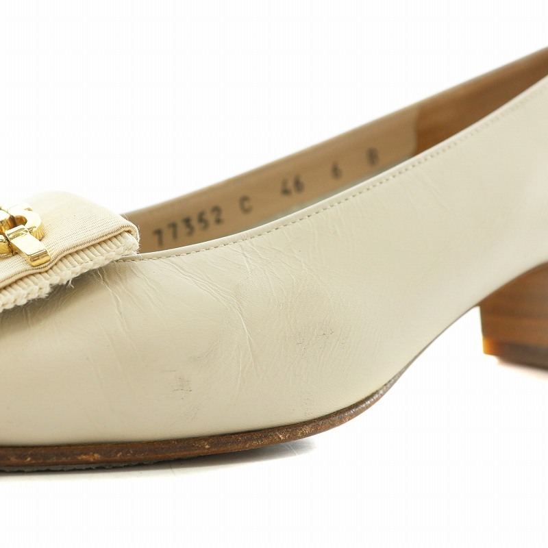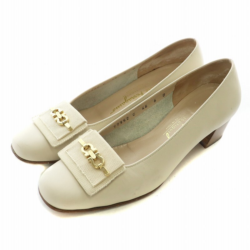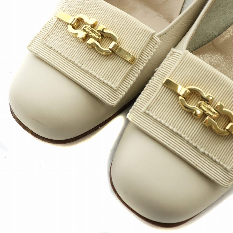 Salvatore Ferragamo パンプス レザー スクエアトゥ チャンキーヒール ガンチーニ ロゴ ゴールド金具 6 23.5cm アイボリー