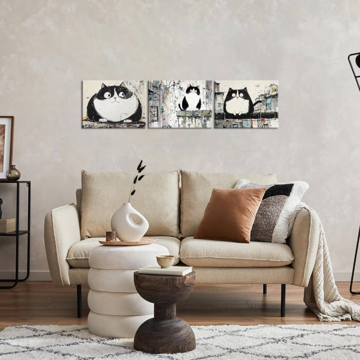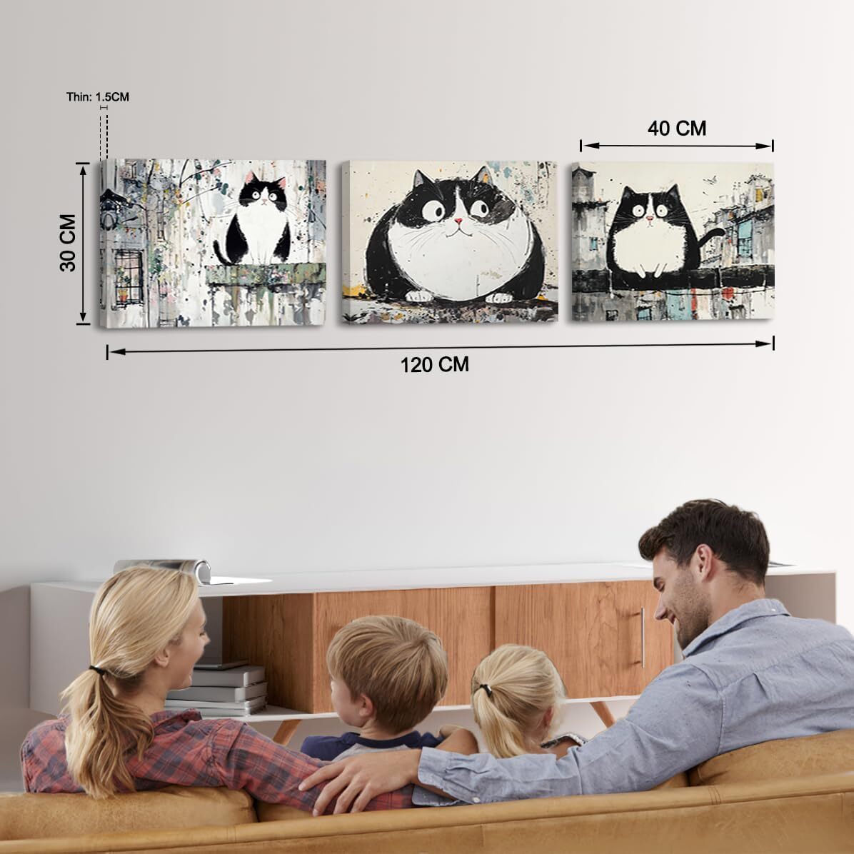 動物のキャンバス画 動物の壁アート ウォールアート 可愛い子猫のキャンバスプリント アート 絵画 デコレーション 3枚パネル 3×30x40 cm