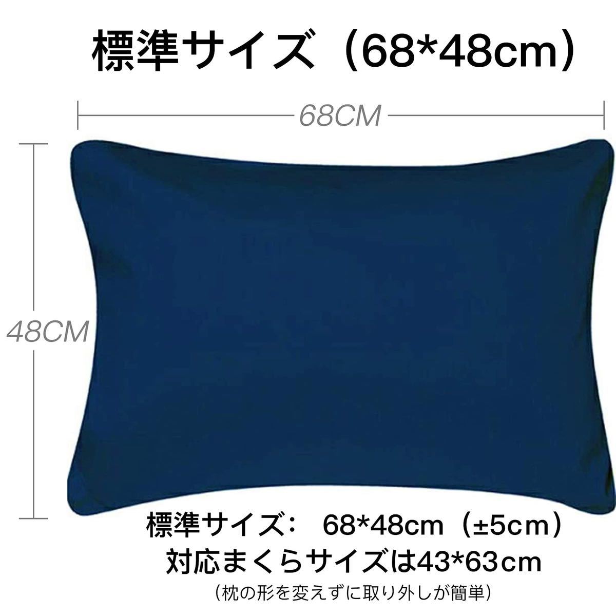 枕カバーサイズ:68x48cm(±5cm)、標準サイズ(43×63cm)の枕に適用します。