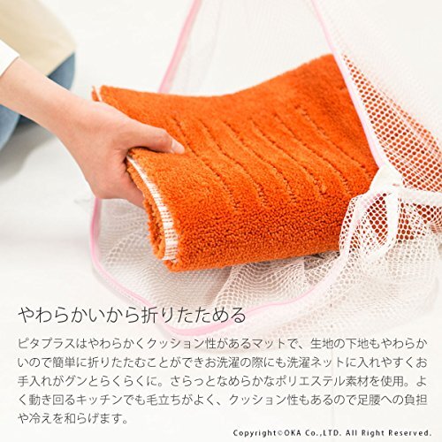 説明 今までにない裏面が吸着タイプのつなぎあわせたり組み合わせて自分だけのキッチンマットが完成します。 1枚1枚プラスしてつなげて使うピタプラス キッチンマットなら汚れた部分だけサッと取り出してお洗濯ができます。つなぎ目がわかりにくいように特殊カットしたピタプラスだから、お洗濯を何度繰り返してもふかふかのパイルはほつれてきません。 やわらかくクッション性があるマットで、生地の下地もやわらかいので簡単に折りたたむことができお洗濯の際にも洗濯ネットに入れやすく◎。 裏面には吸着素材になっているから床にピタッとくっついて動きません。だから上から掃除機をかけてもずれずにストレスフリー。 ロボット掃除機が上に乗ってもずれないので安心して掃除を任すことが出来ます。フチまわりが目立たない特殊カットだから、つなぎ目がわかりにくくいろんなアレンジが可能です。 ■注意 飛び乗ったりすると、滑ってけがをすることがあります。 ■洗濯上のご注意 ●乾燥機はご使用にならないでください。(熱により変形・損傷の恐れがあります。) ●家庭用洗剤をご使用の上、洗濯機での丸洗いは洗濯ネットをご使用ください。(洗濯用石けんはご使用にならないでください。吸着力が損なわれます。) ●初めは多少毛羽が出ますので、他のものとは別にしてください。 ●ねじり絞りは避け、陰干ししてください。 ●損傷を防ぐ為、洗濯槽の高さより低くなるように折りたたんで単品で洗濯してください。 ■お願い ●本商品はハサミでカットできません。 ●マットを外す際、吸着力が強い場合は、ゆっくりはがしてください。 ●マットをはがした後、床面が滑りやすくなる場合がありますのでご注意ください。その場合は濡れ雑巾で拭いていただくことですべりにくくなります。 ●長期間敷き詰めたままにしておくと、マットの裏面材や床用ワックスの影響で床材が、黄変または密着したり、床が滑りやすくなる場合があります。時々使用場所をずらしたり中性洗剤で床面をふいたりしてご使用ください。また、床材に吸着部分が付着することがあります。付着した場合は雑巾をぬるま湯に浸してふき取ってください。 ●水分などがある上に敷くとすべる恐れがありますので、ご使用の際は水等よく拭き取ってください。 ●マットが湿った状態で長時間放置するとかびの発生原因となります。 ●パイルを引っぱったり、引っかけたりしないでください。(パイルがほどけた場合は、つくろうかハサミでカットしてください。) ●ご使用時に、水分を含んでいると裏面の吸着部部が剥離する場合がありますので、洗濯後は十分に乾燥させてからご使用ください。 ●素材の特性上、洗濯後は多少縮む恐れがあります。 ●本来の用途以外にはご使用にならないでください。