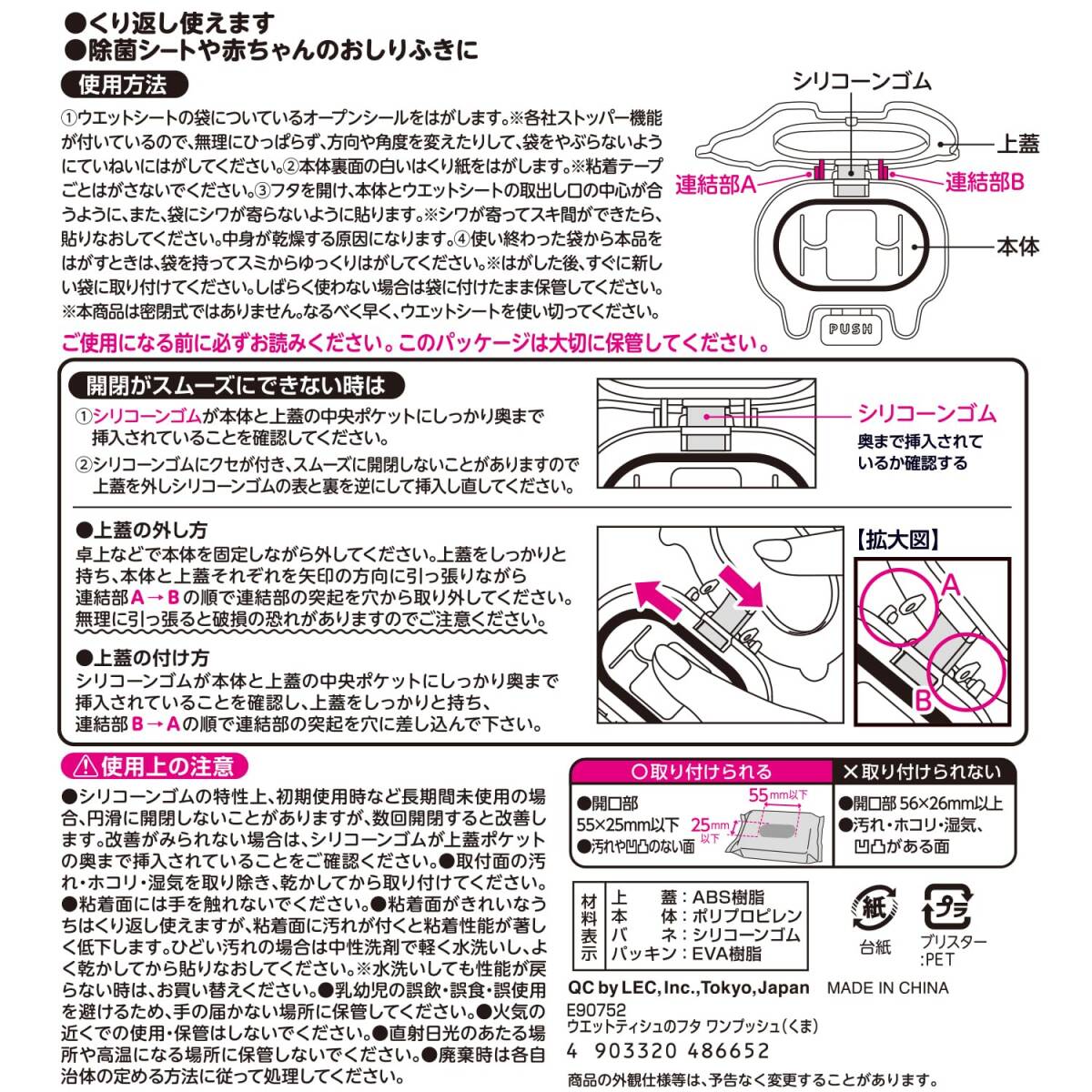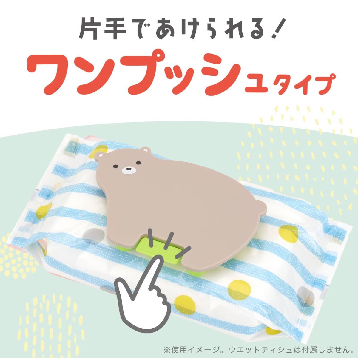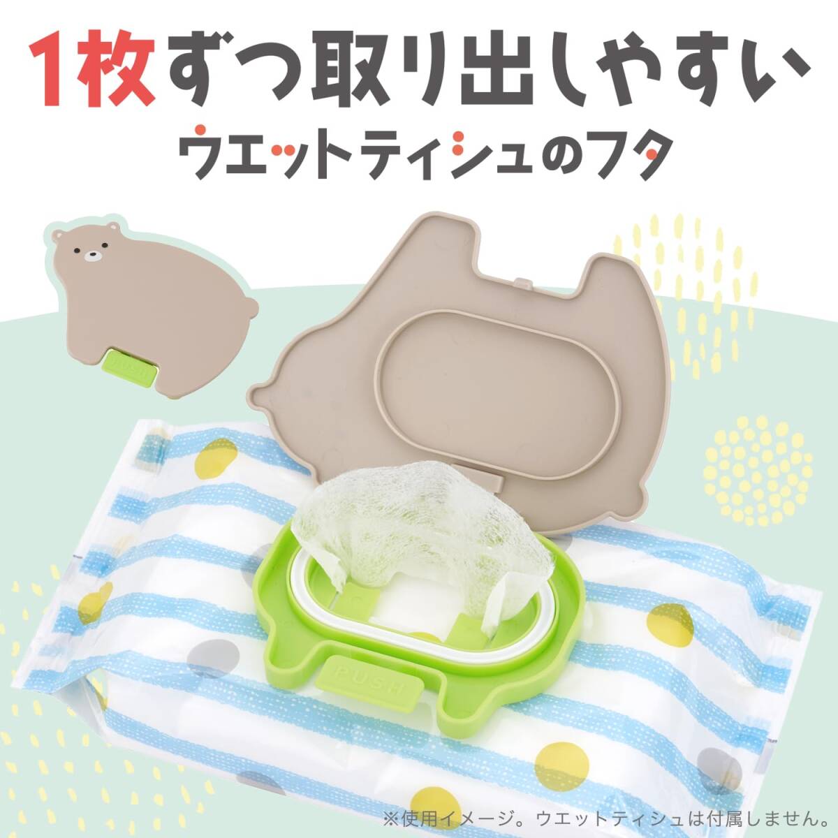 レック ウエットティシュ の フタ ワンプッシュ (くま) ブラウン/抗菌加工/乾きにくいパッキン付/1枚ずつ取り出しやすい/