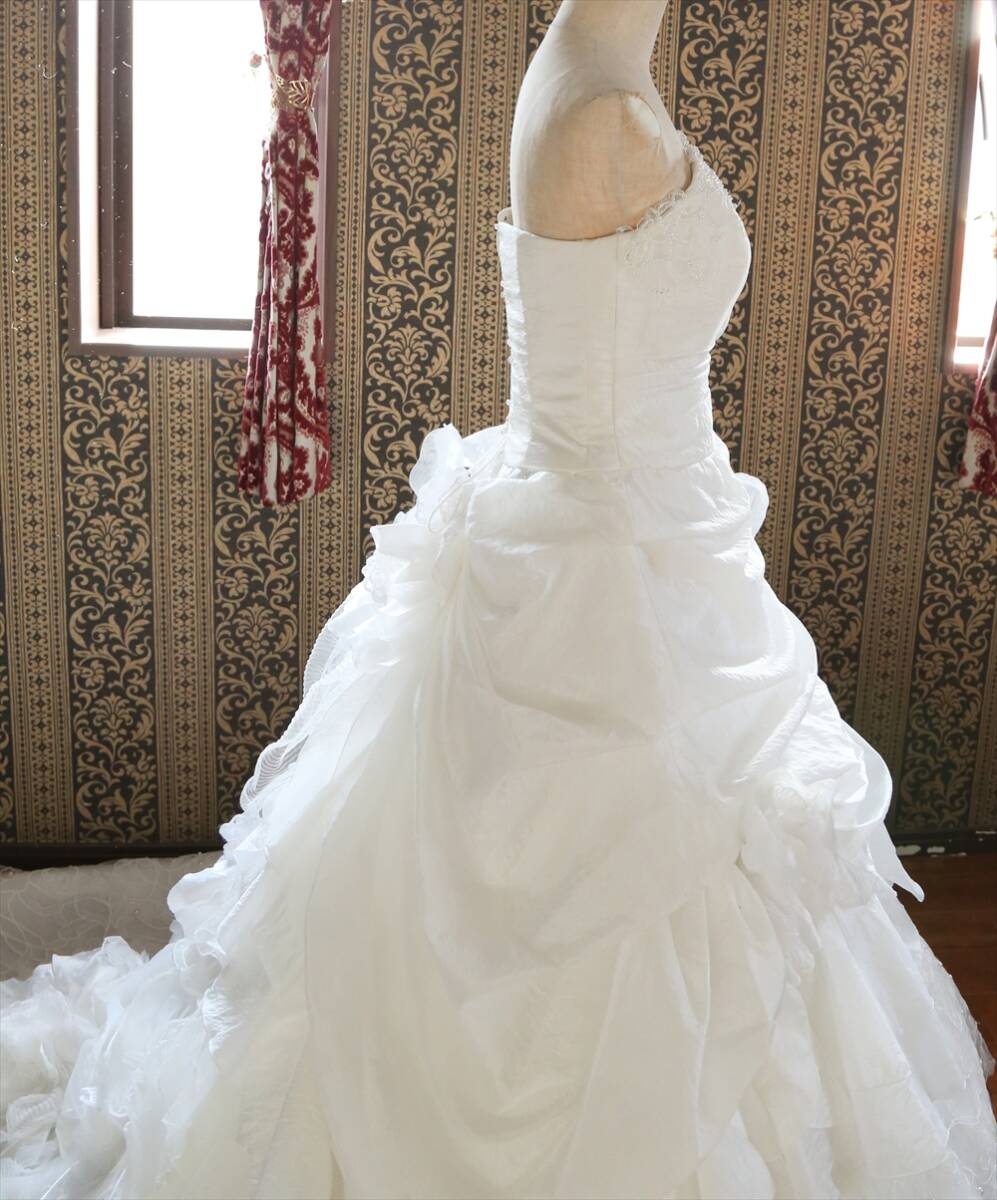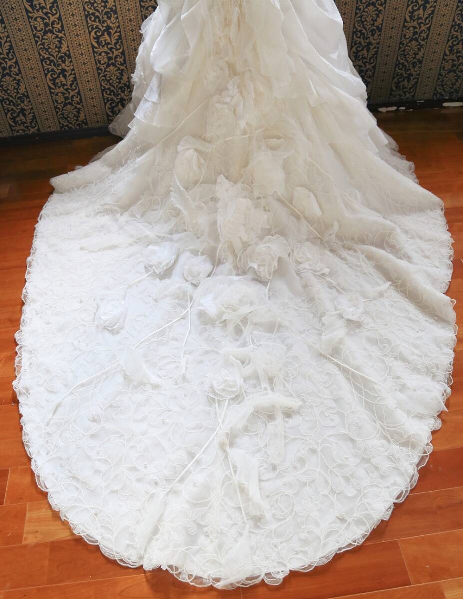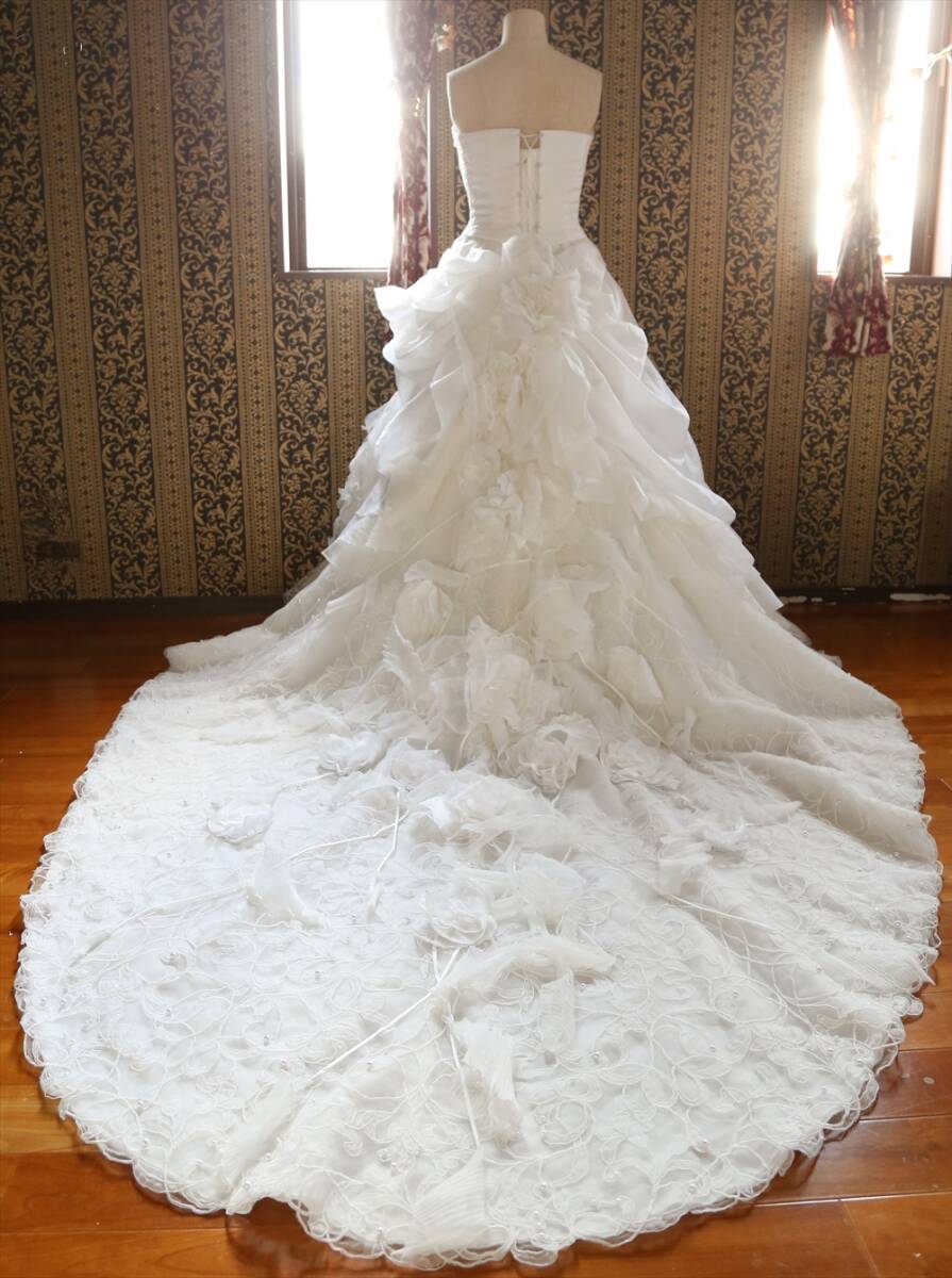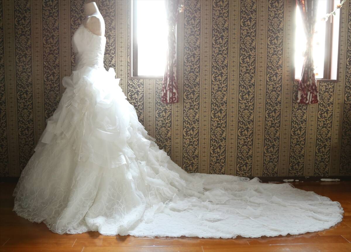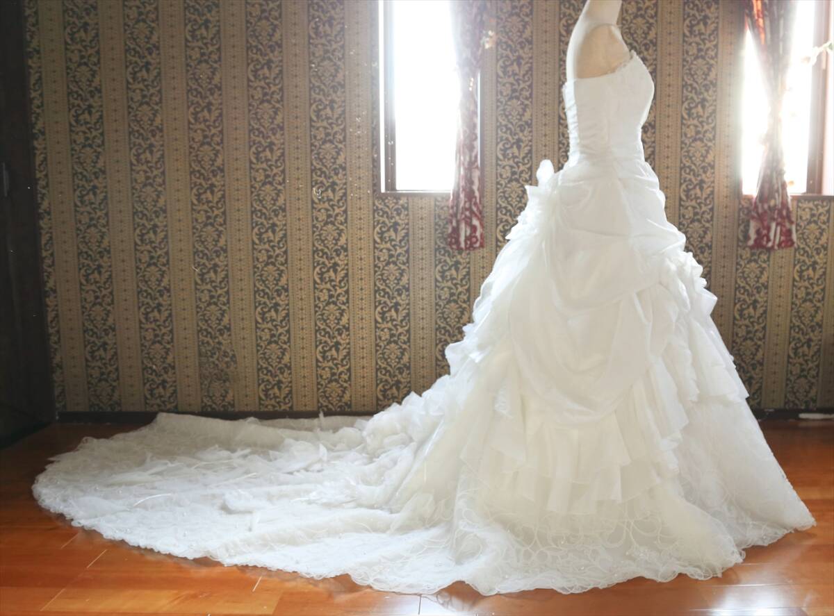 アイクリア美しいロングトレーン高級ウエディングドレス9号11号13号M~LLサイズ編上げ調節可能
