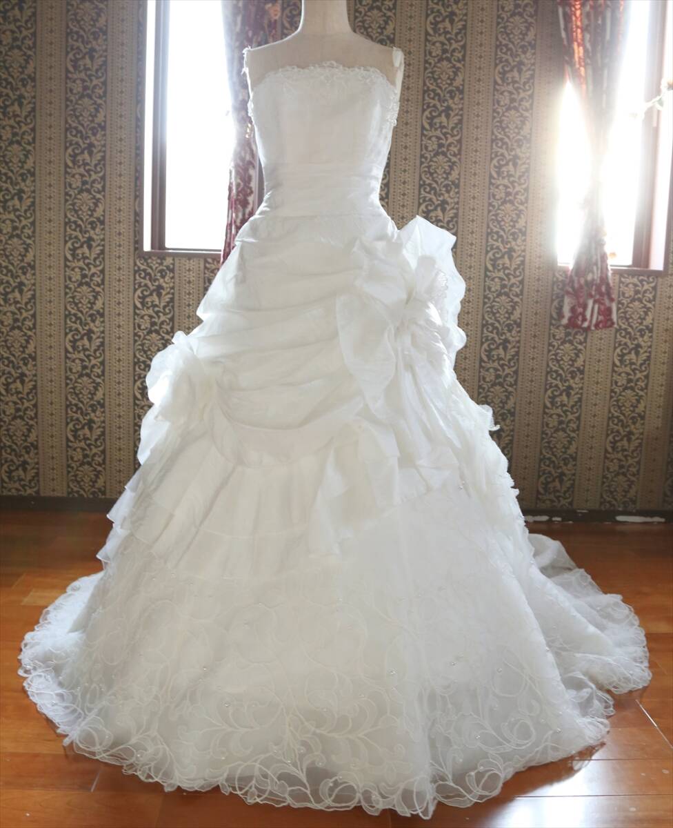 実寸はバスト約8292cm、ウエスト約6070cm、前中心から裾までの丈約140cm、脇下から裾までの丈138cm、後ろ丈約243cm、多少の誤差はご了承ください