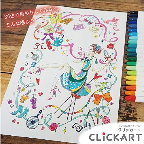 ゼブラのノック式水性カラーペン、「クリッカート」。 クリッカートは「キャップない」・「乾かない」・「色キレイ」がセールスポイントです。 これまでのカラーペンの使用における不満な点は、、、 (1)キャップを閉める時に誤って手にインクがついてしまう。 (2)キャップの開け閉めが面倒。 (3)キャップを閉め忘れるとペン先が乾いてしまう。 これらの不満を、クリッカートは「キャップない」・「乾かない」・「色キレイ」の3大メリットで払拭致します! クリッカートは全36色ございます。