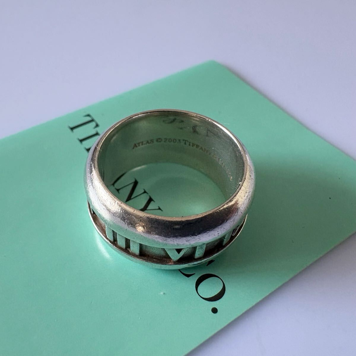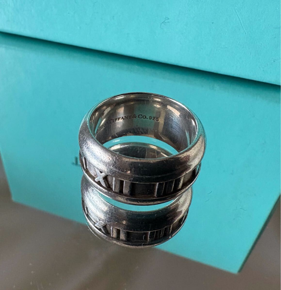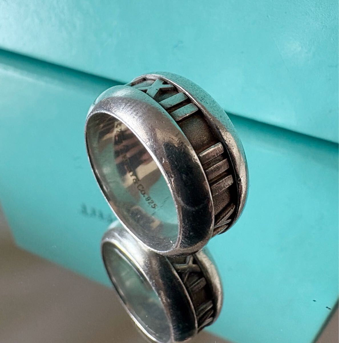 ◆美しくローマ数字が配置された、ティファニーの「アトラスリング」がです。 存在感のあるデザインで、これ一つでも指元を華やかにすることができます。