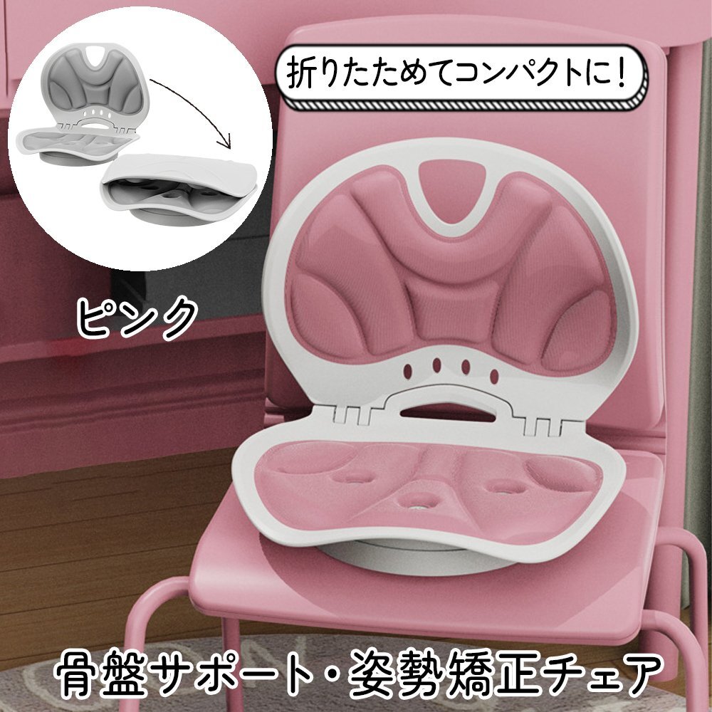 姿勢矯正 椅子 骨盤サポート 姿勢サポート 骨盤ケア 折りたたみ 回転可能 人間工学 猫背改善 腰痛対策 持ち運び簡単 チェア ギフト ピンク