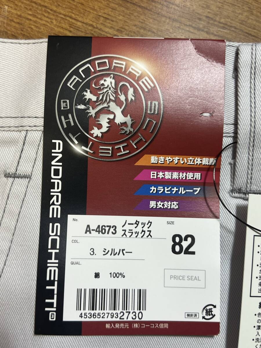 ANDARE SCHIETTI 作業服 【ズボン 82 シルバー A-4673 綿100%】 パンツ ノータックスラックス ボトムス 男女対応 作業着 作業衣 DIY用品