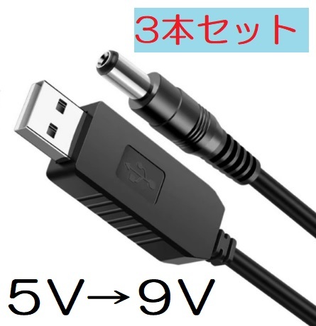 3本セット USB 昇圧ケーブル USB‐DC USB DC5v-DC9v 5.5-2.1mm 5v‐9v(変圧 昇圧 変換 モジュール コード ケーブル DC‐DC