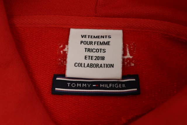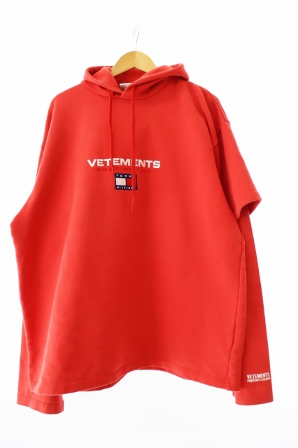 ヴェトモン ベトモン VETEMENTS ×TOMMY HILFIGER トミーヒルフィガー 18SS ロゴ レイヤード プルオーバー パーカー S 赤 レッド ☆AA★ 250720