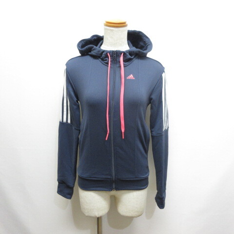 アディダス adidas ジャージ 上下 セットアップ フード付き S ネイビー ジップ パーカー ロングパンツ トレーニングウェア レディース
