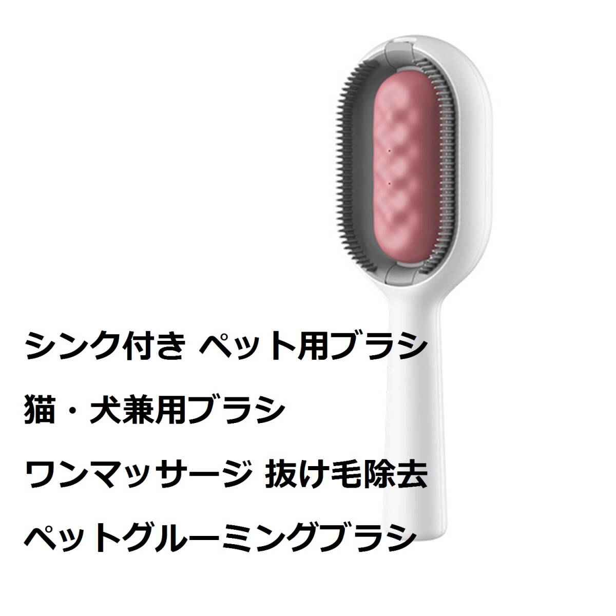 # BM21 シンク付き ペット用ブラシ 猫・犬兼用 長毛種・短毛種 くし ワンマッサージしながら抜け毛除去 ペットグルーミングブラシ