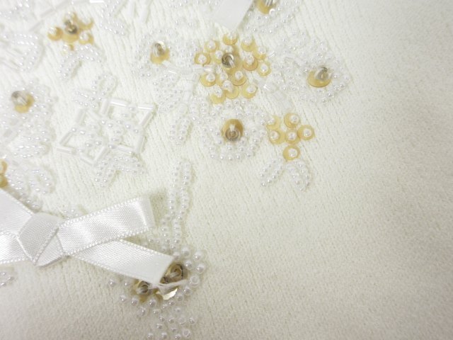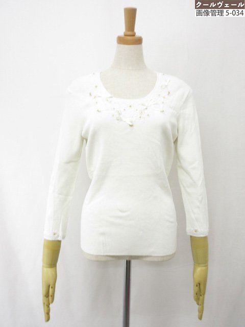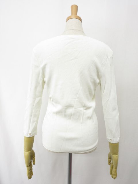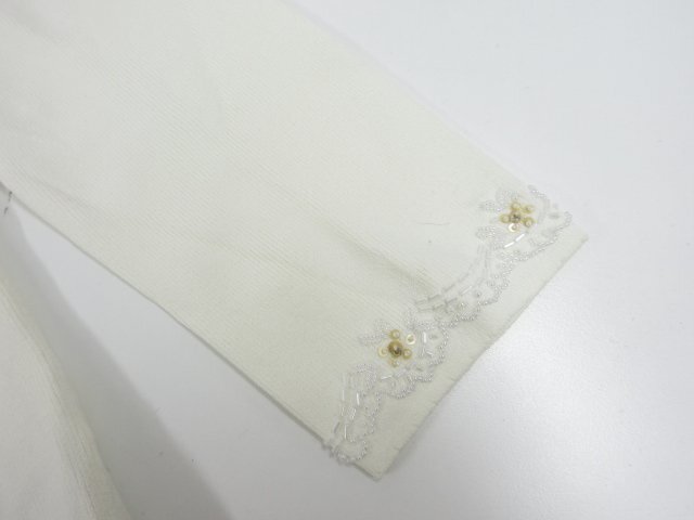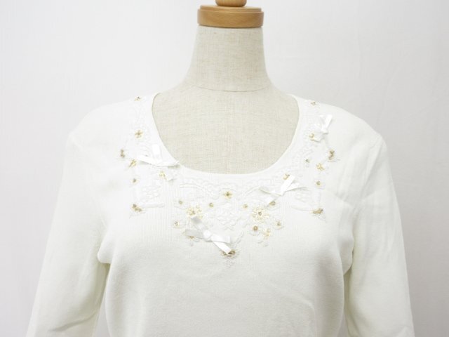 美品【トゥービーシック】 七分袖 ビーズ×リボン装飾 ニット (レディース) size3 オフホワイト UA483-266-01 ◇33LN5861◇