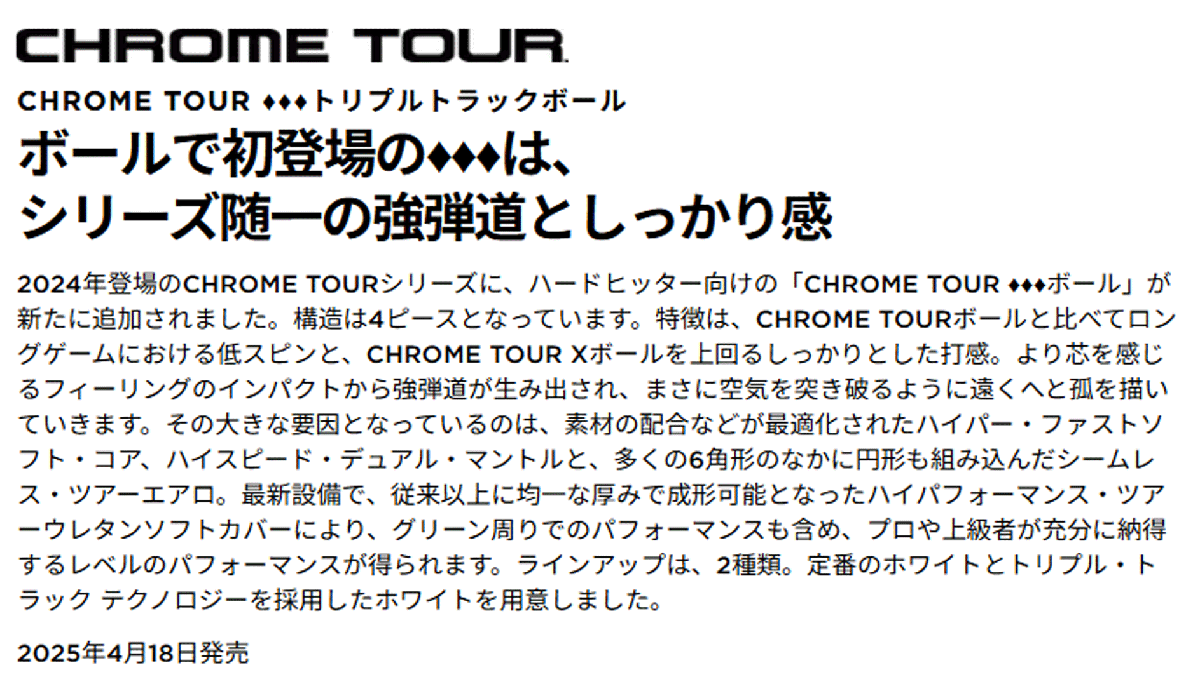 新品■2025.4■キャロウェイ■CHROME TOUR■トリプルダイヤ■トリプルトラック■5ダース■シリーズ随一の強弾道としっかり感■正規品