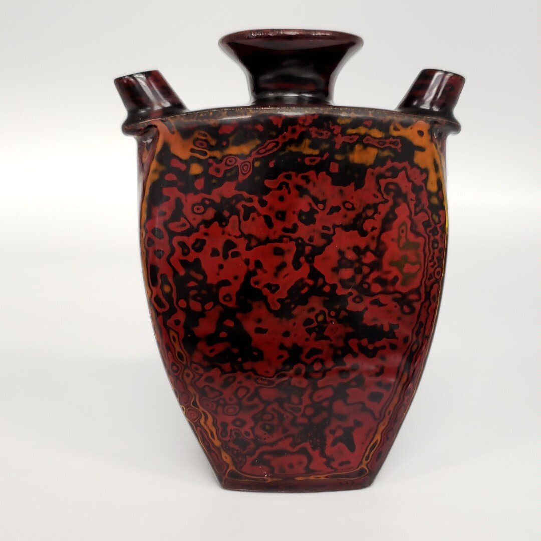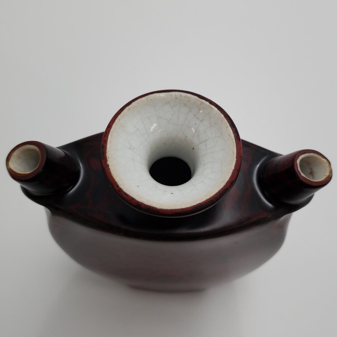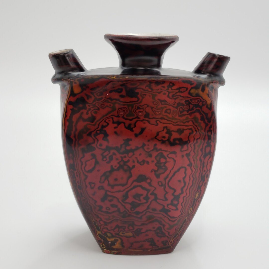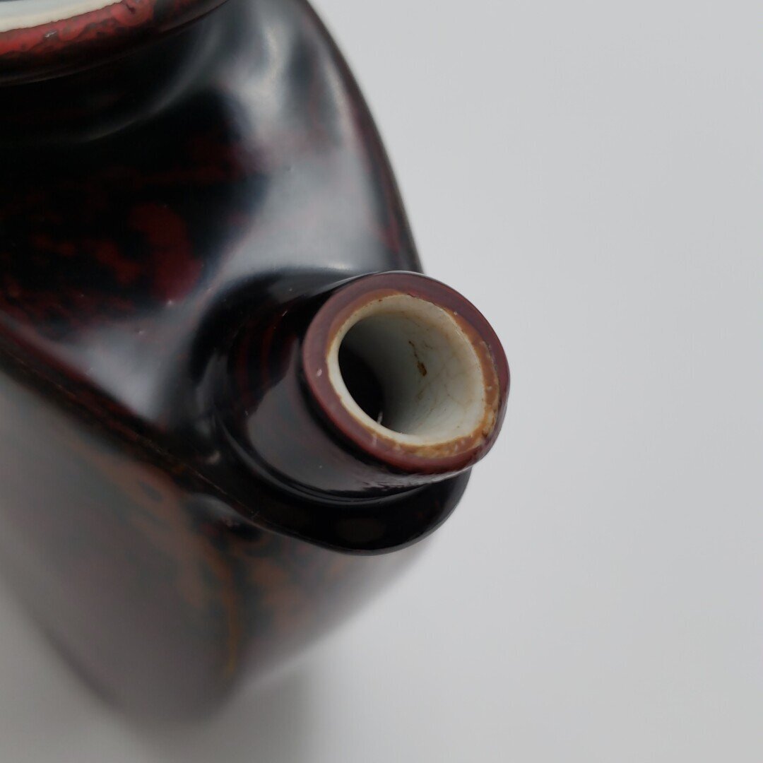 珍しい形の徳利です。陶胎漆器という、陶器に漆を重ね塗りして作られたもののようです。