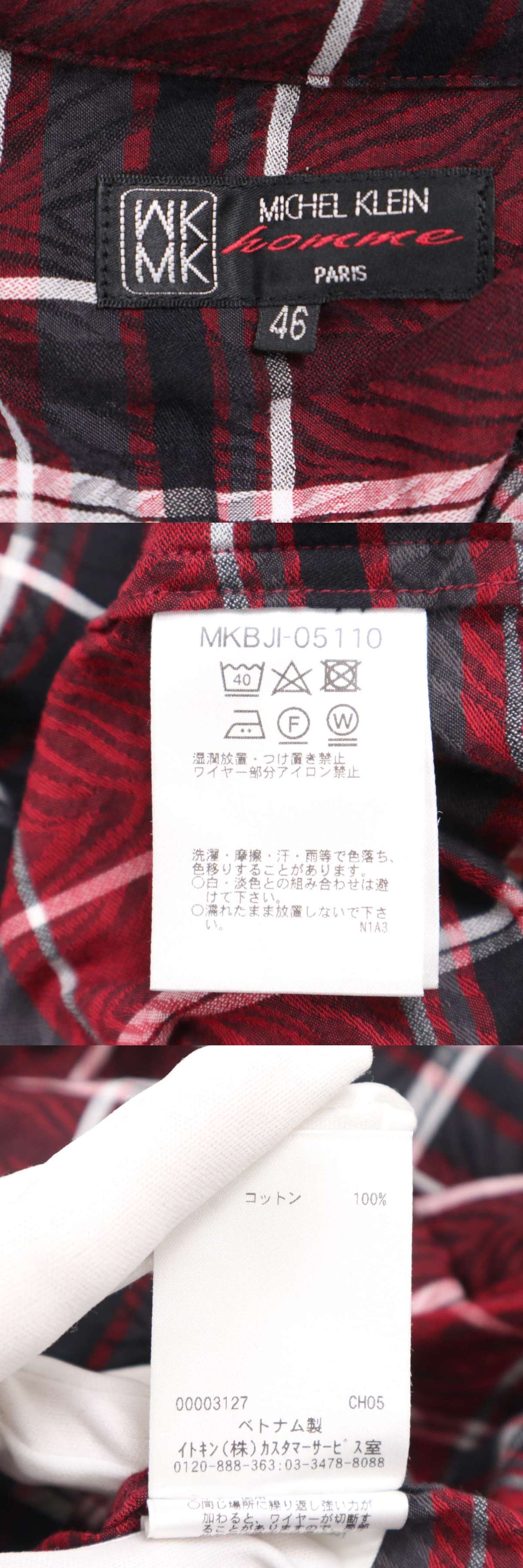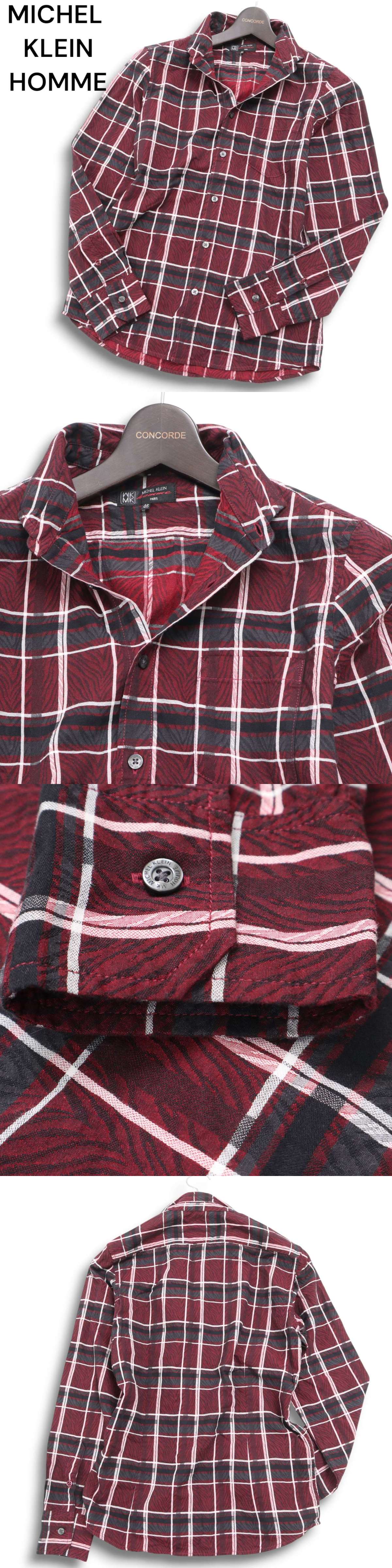 MK HOMME ミッシェルクラン オム 通年★ チェック ゼブラ柄 長袖 シャツ Sz.46 メンズ