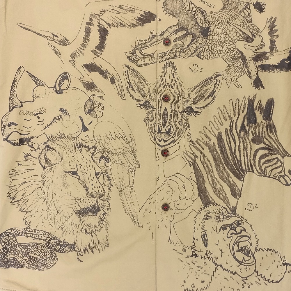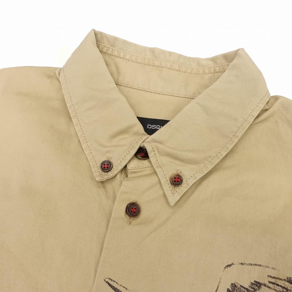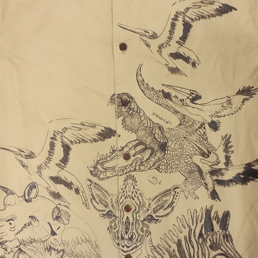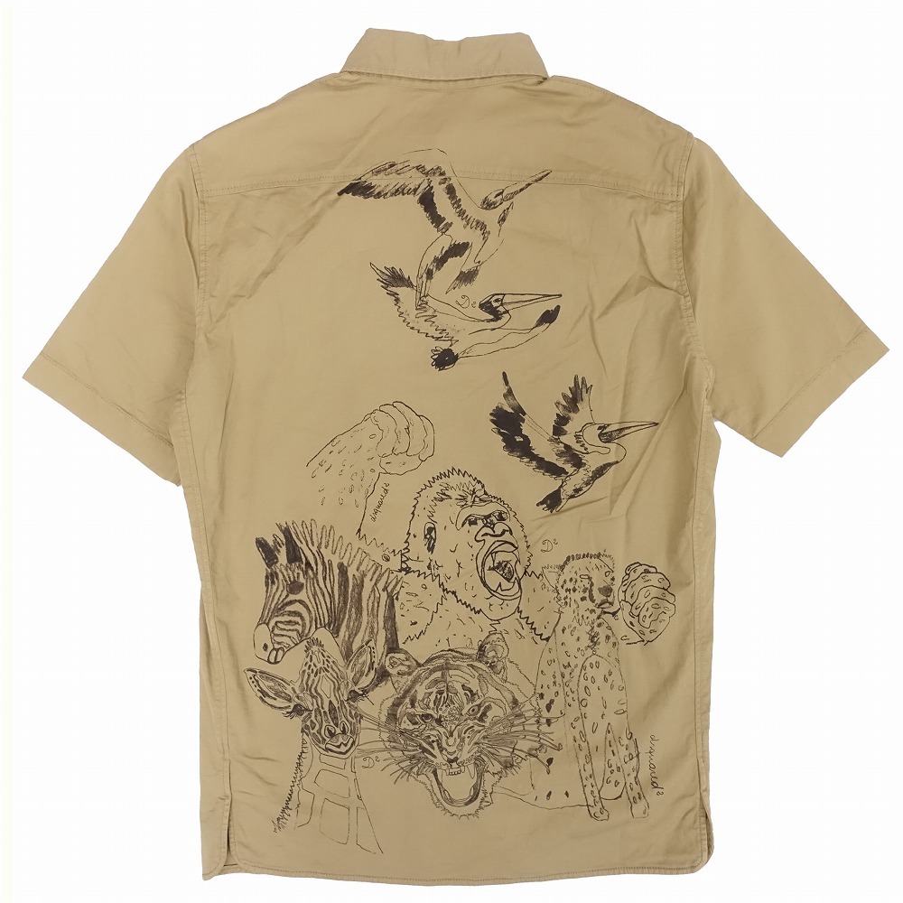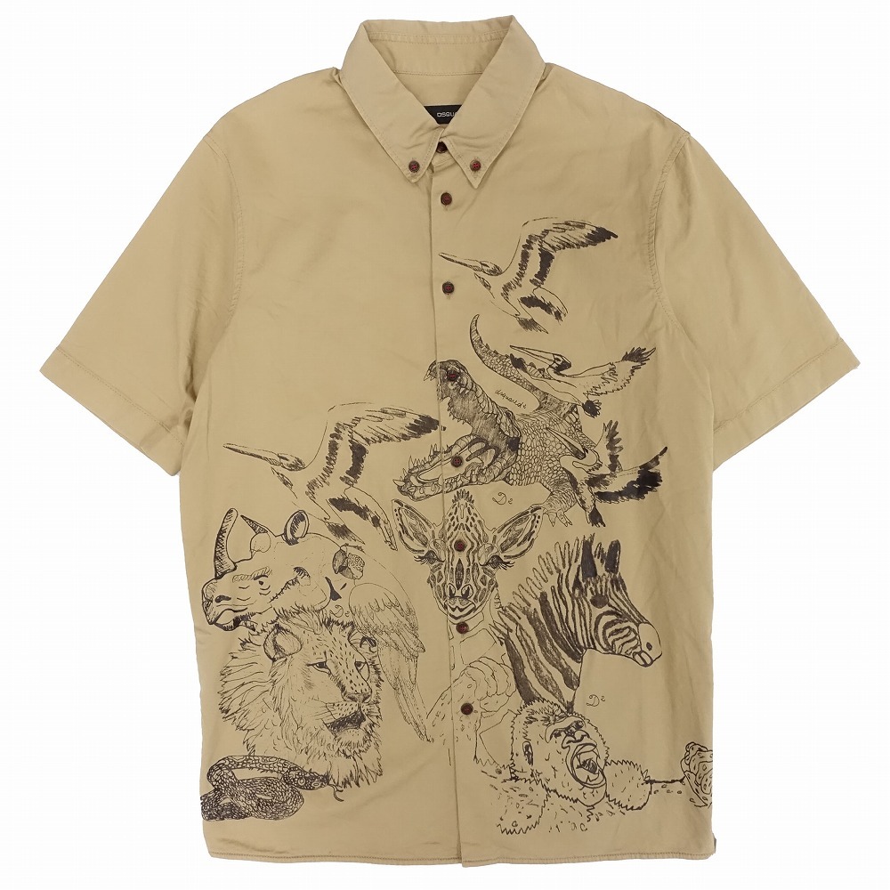【14ss DSQUARED2 ディースクエアード アニマル柄 プリント シャツ ボタンダウン 半袖 トップス サイズ44 S ベージュ メンズ】 | |