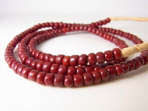 ◆良い色!!オールドベネチアン、赤レンガ~エンジ系のグラデーション、4.2ミリ玉一連!!◆アンティークビーズとんぼ玉