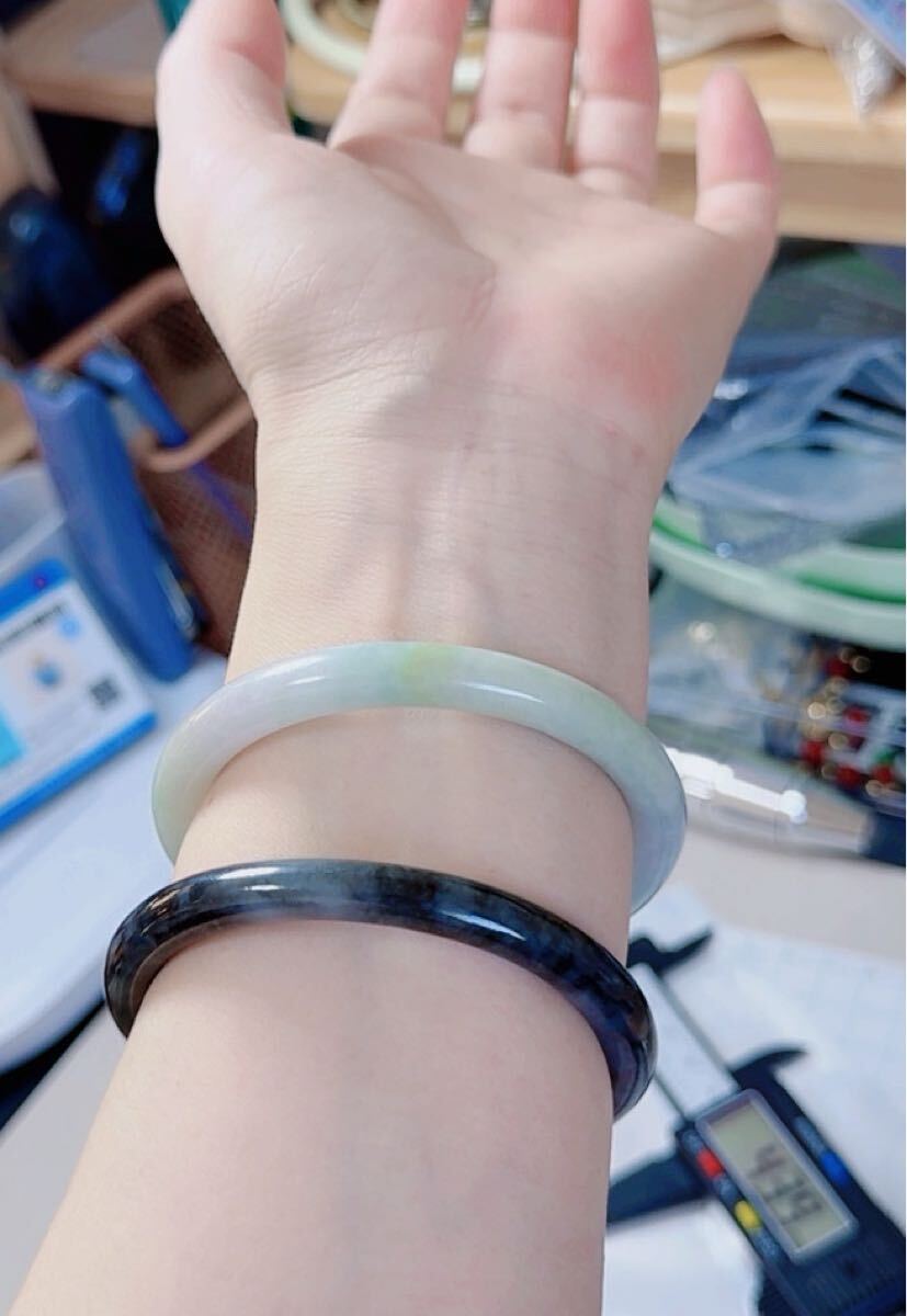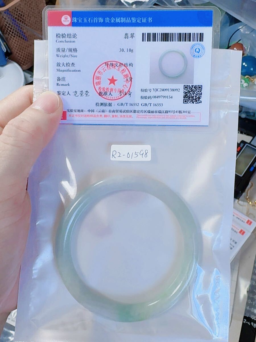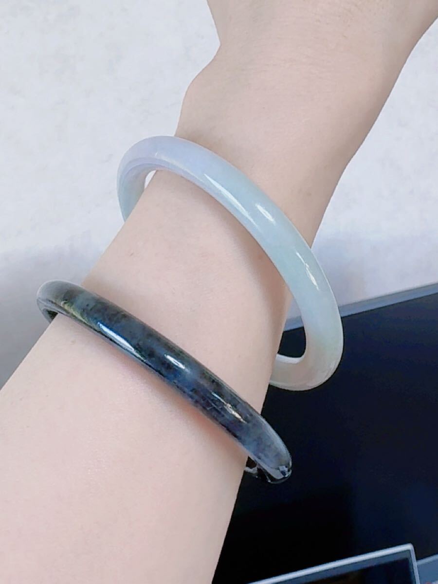 R2-01598 天然本翡翠《本物保証》 円形 翡翠バングル56.4mm 一点物 希少 縁起物 お守り パワーストーン