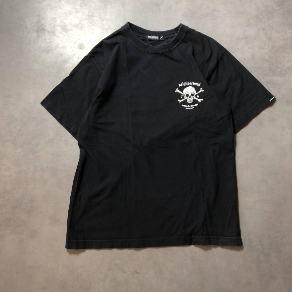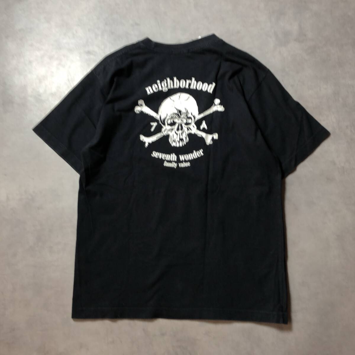 GQ2960◇NEIGHBORHOOD : 90's 初期 クロスボーンスカルTシャツ◇S◇黒 ネイバーフッド seventh wonder