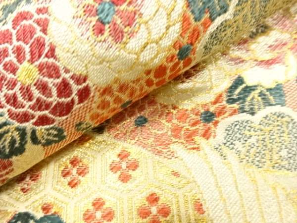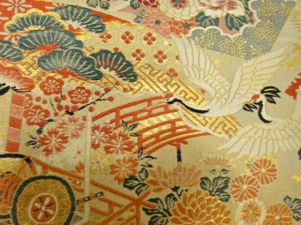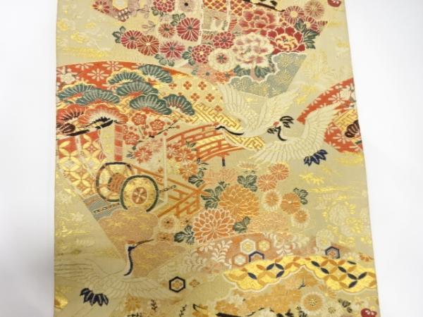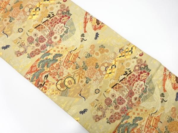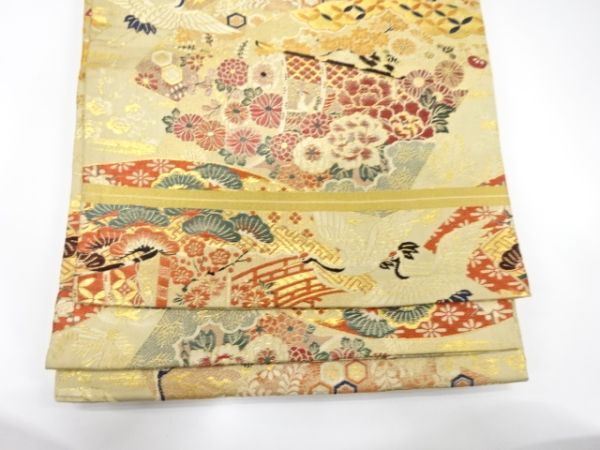 ys7465041; 几帳に鶴・橋模様織り出し丸帯(着用可)【アンティーク】【着】