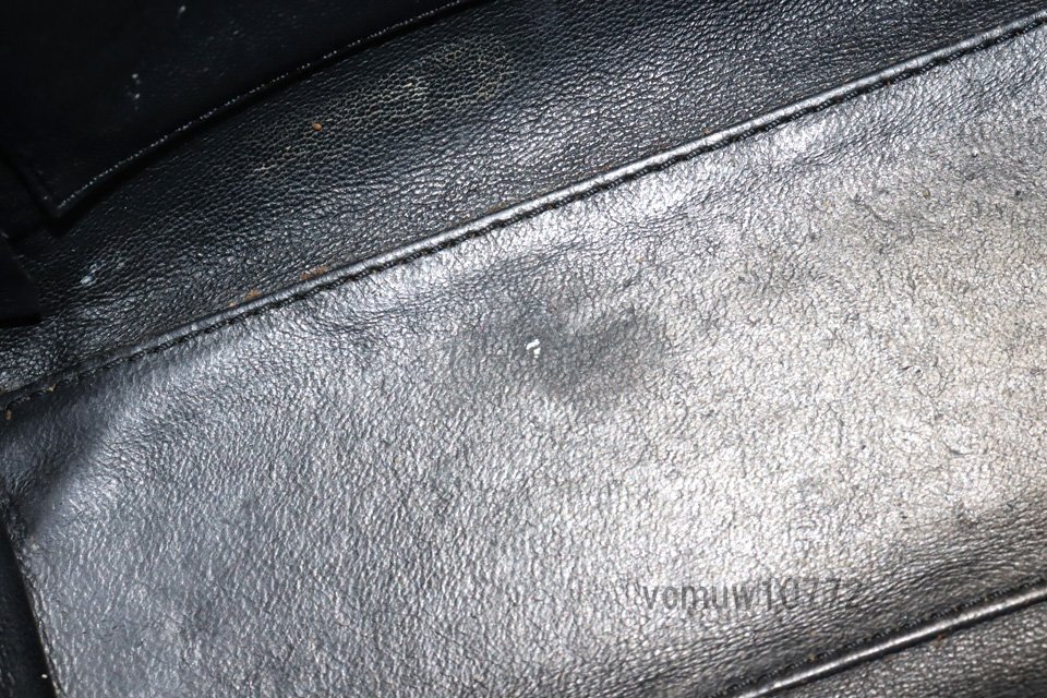 中古ですので新品と比較してすれ、小傷、色むら、若干の型崩れ、使用に問題ないレベルの糸ほつれ、金具にくすみ等ございますが写真の通りコンディション良好です。