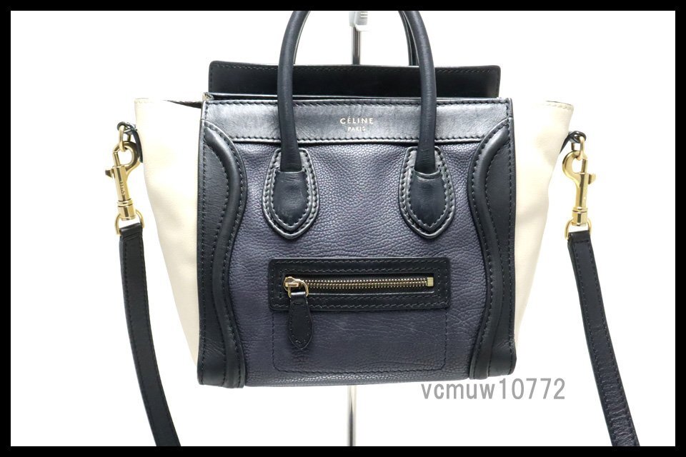 近年モデル希少美中古■CELINE ラゲージ ナノショッパー レザー 2way ハンドバッグ セリーヌ■0828vj521-1