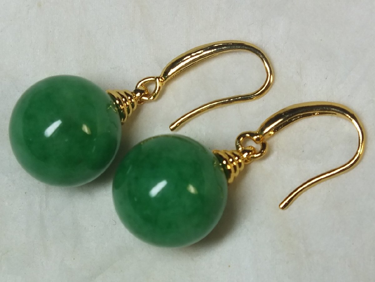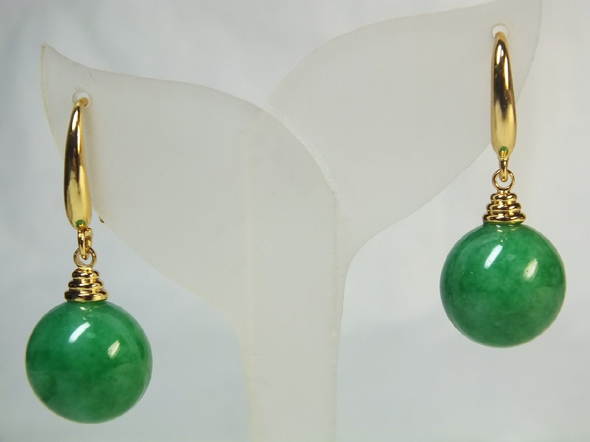 ▲▽■龍香堂■ミャンマー翡翠14mm玉ピアス即決yor*△▼ | |