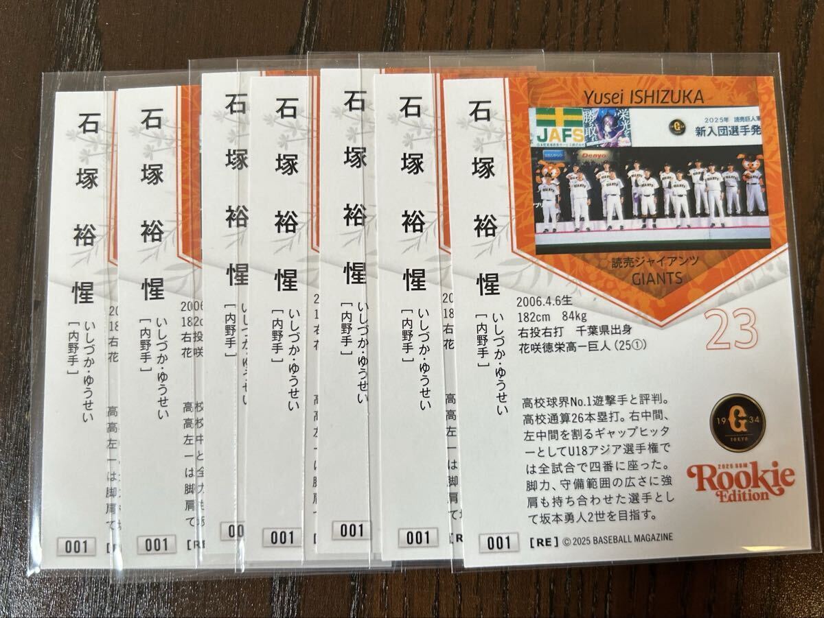 7枚セット 石塚裕惺 2025 BBM ルーキーエディション RE RC 読売ジャイアンツ 巨人