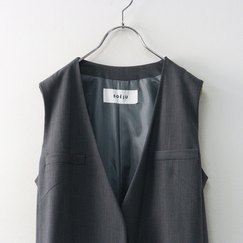 ソージュ SOEJU ウールライクロングジレベスト /グレー 羽織り ノースリーブ ワンピース レイヤード【2400014394269】