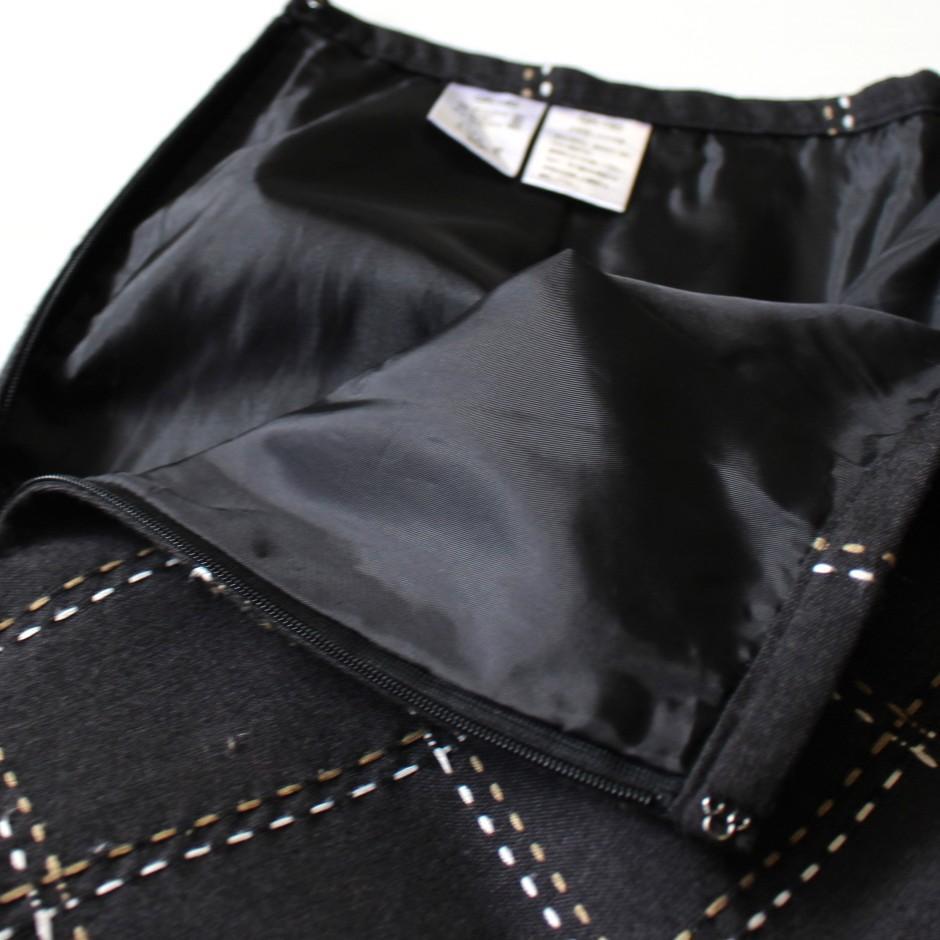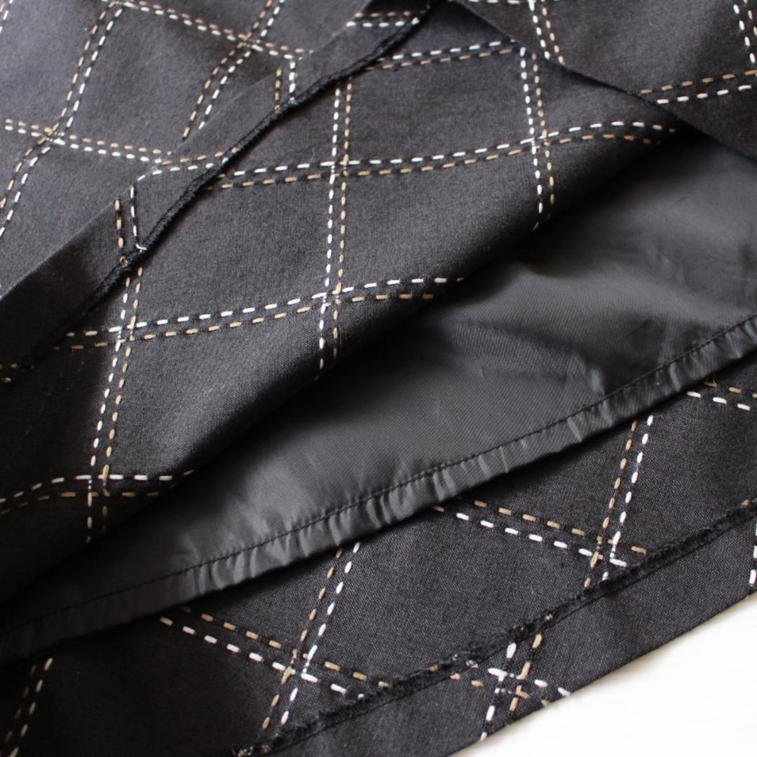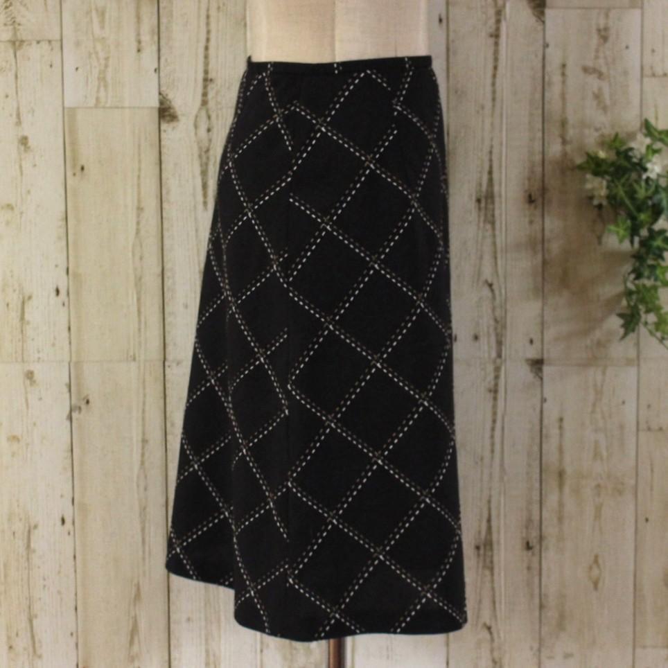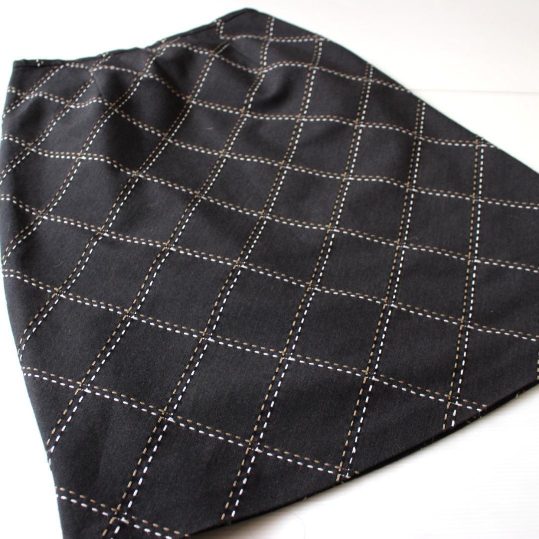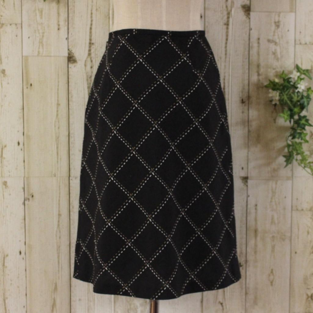 黒系の生地にブラウン×ホワイトの格子柄がおしゃれな台形スカート。