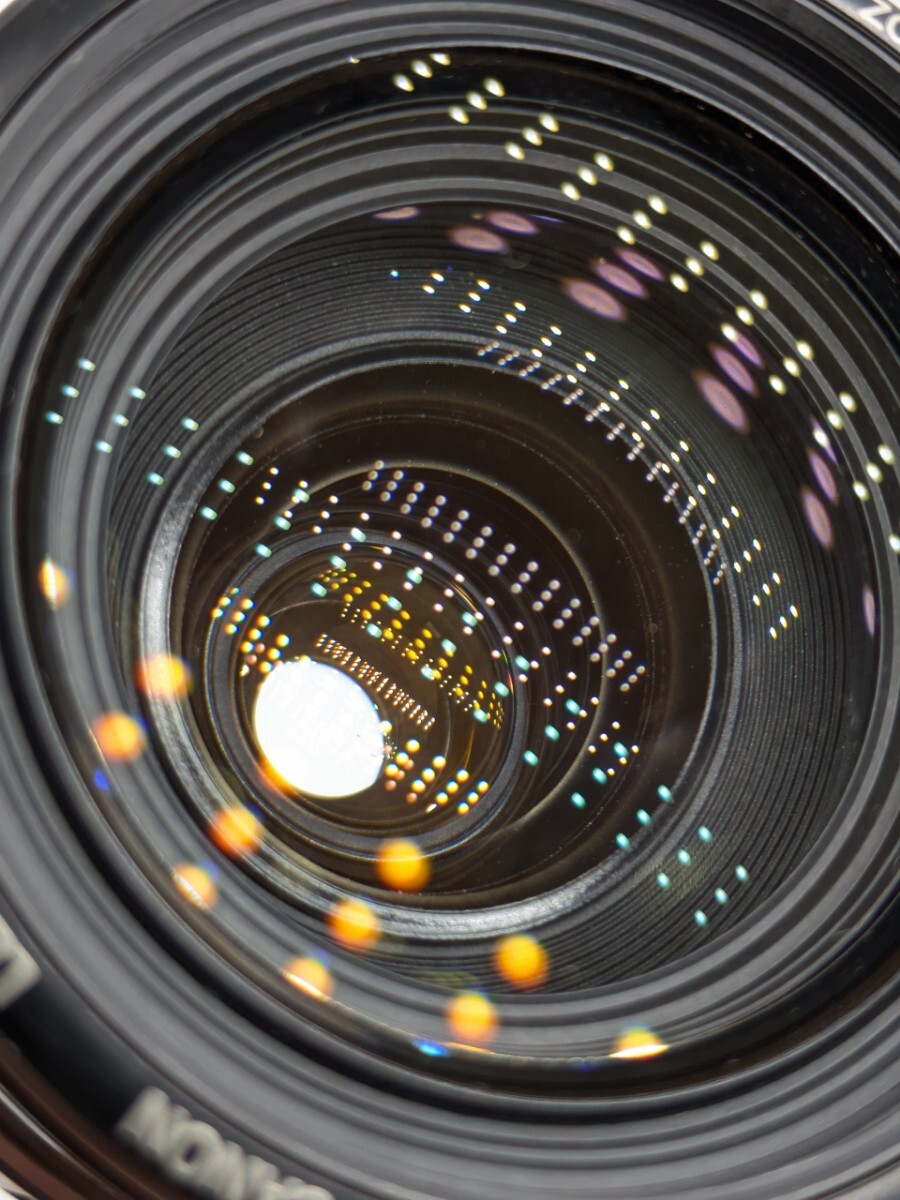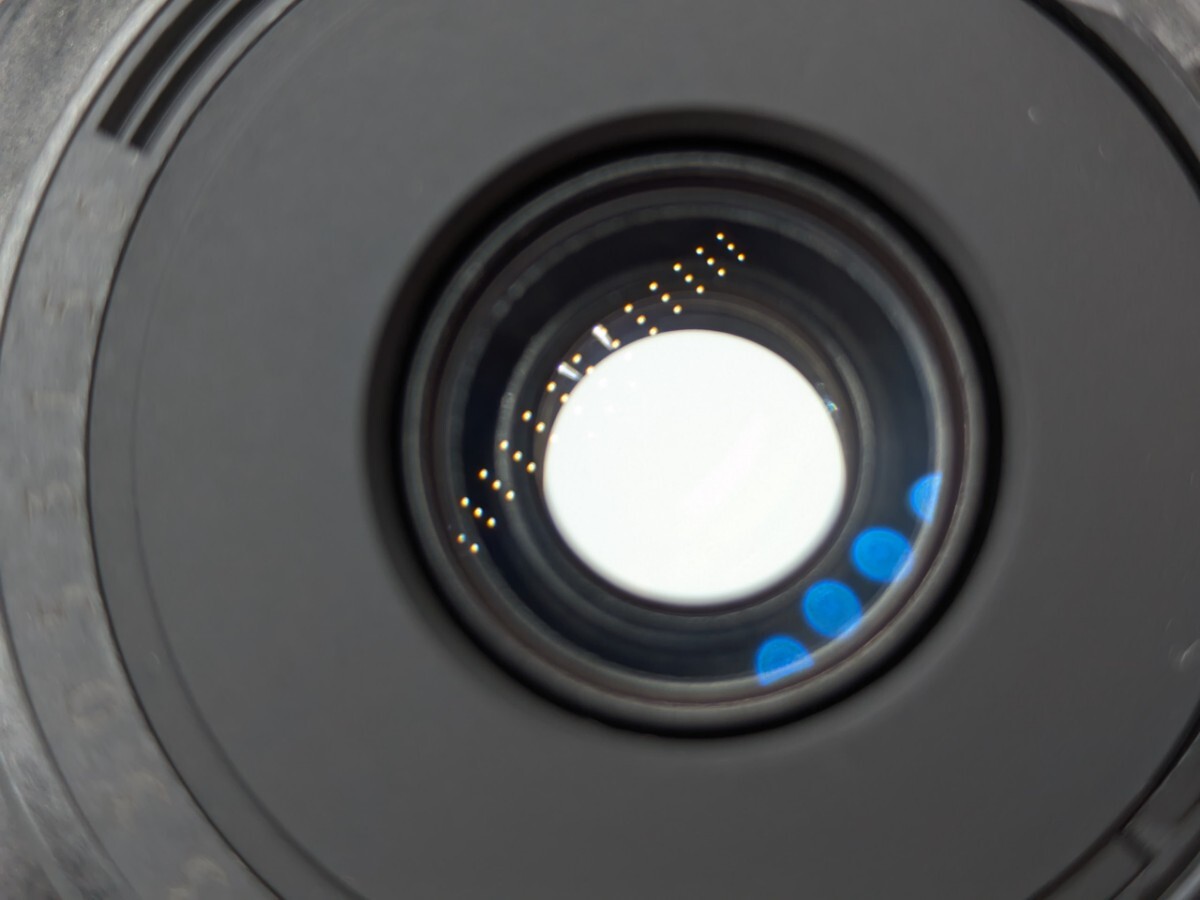 レンズ、前玉に薄い汚れ、極小キズが見られます。カビやクモリはありません。