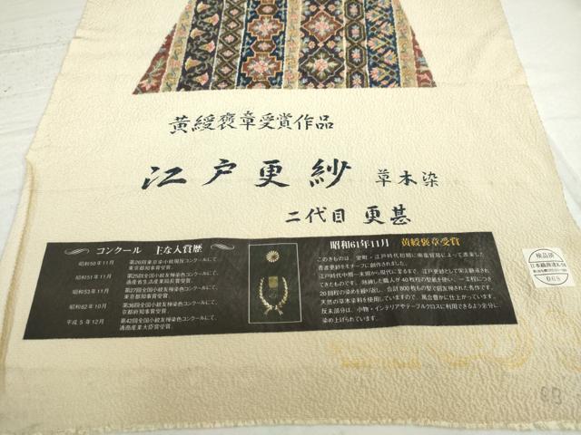 | 【正絹・未使用】 状態は特に目立ったシミ汚れなどもなく大変良い状態です。 <二代目更甚(真田定男氏)> 昭和4年東京生まれ。 昭和20年より家業の染色業に従事、江戸更紗の継承と発展に努める。 東京都伝統工芸品産業技術者功労賞、 全国小紋友禅染色コンクール通産大臣賞ほか受賞歴多数。 昭和61年黄綬褒章受賞。 江戸時代から続く江戸更紗(伝統工芸品)を5世代に渡り継承。 大変上質な逸品になります。 お安く出品致しますので、是非この機会にいかがでしょうか?