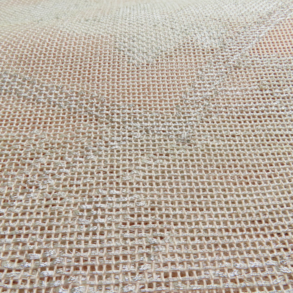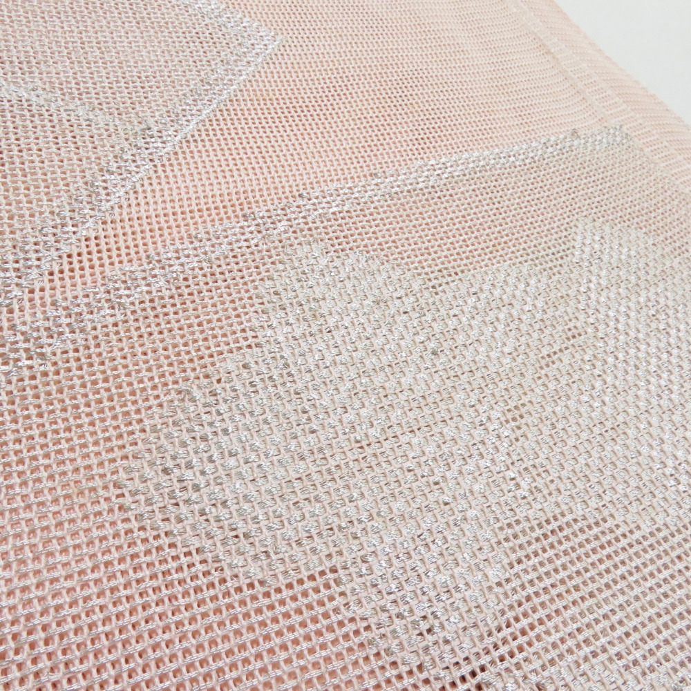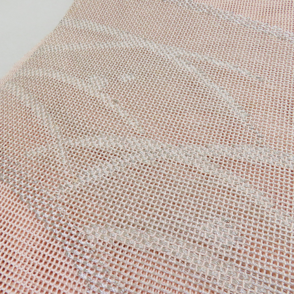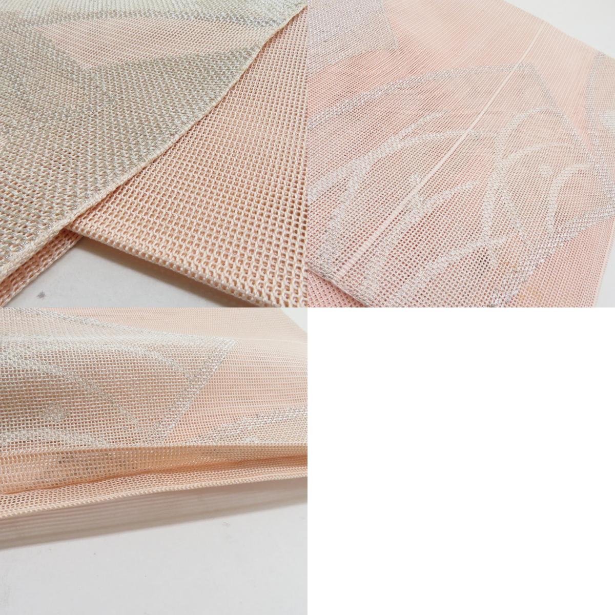 | 袋帯 夏用 扇面柄 桃色 銀糸 六通柄 正絹 芯なし仕立て なし 着物帯 長さ432cm |