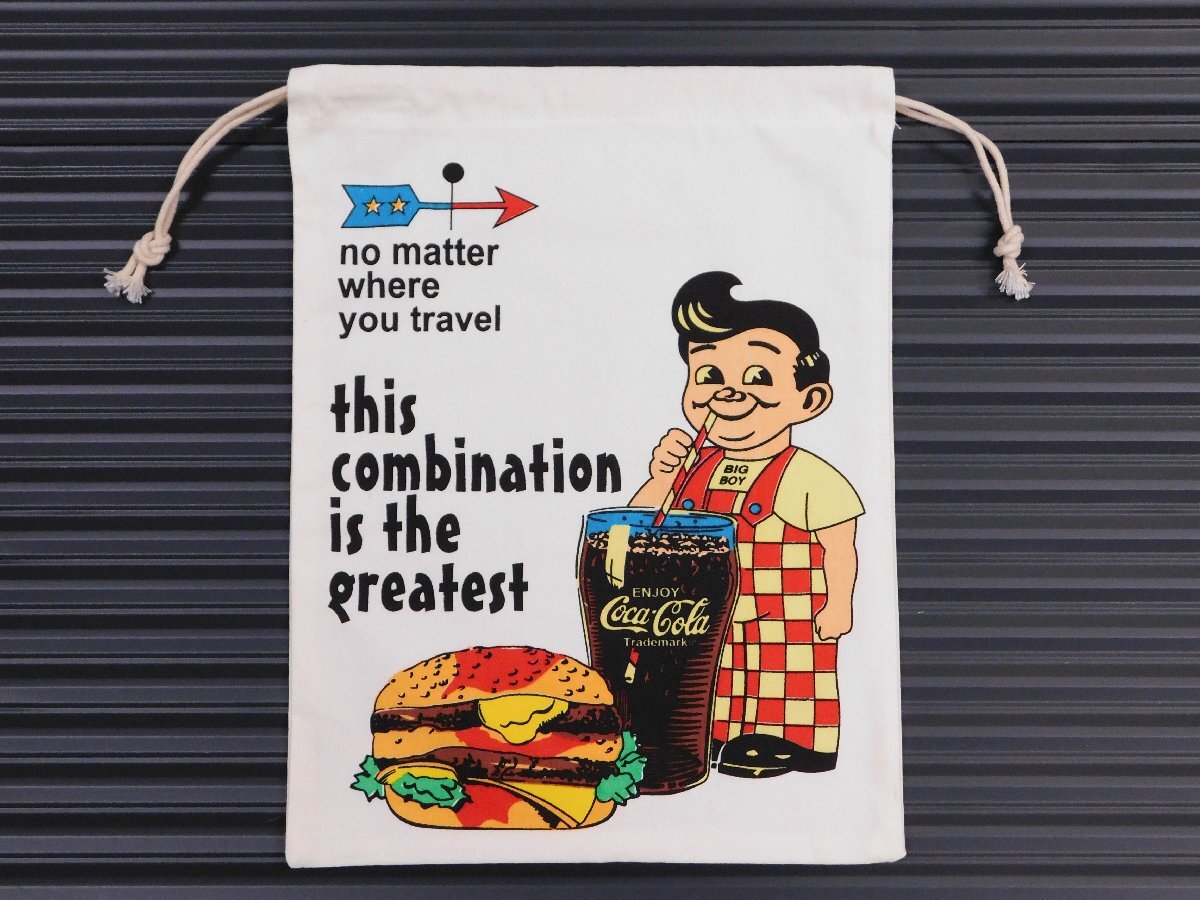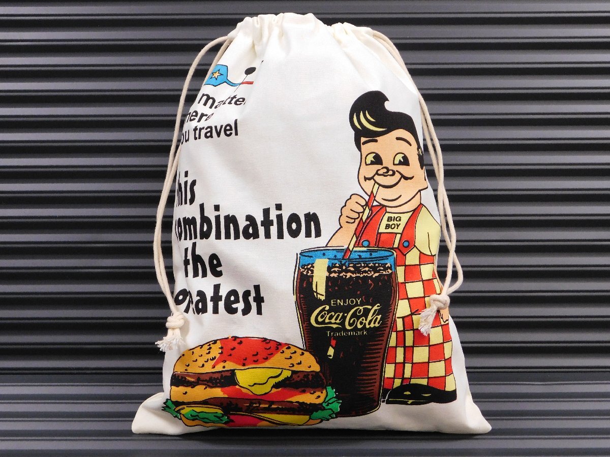 ◆送料\185◆【Big Boy・ビッグボーイ】※《アドバダイジング 巾着袋 /Lサイズ》Coca Cola 340×260mm シューズバッグ アメリカン雑貨