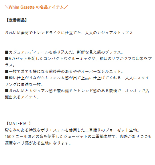 【Whim Gazette ウィムガゼット】Vガゼットプルオーバー ジョーゼットの二重織素材