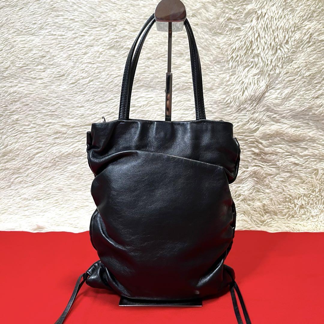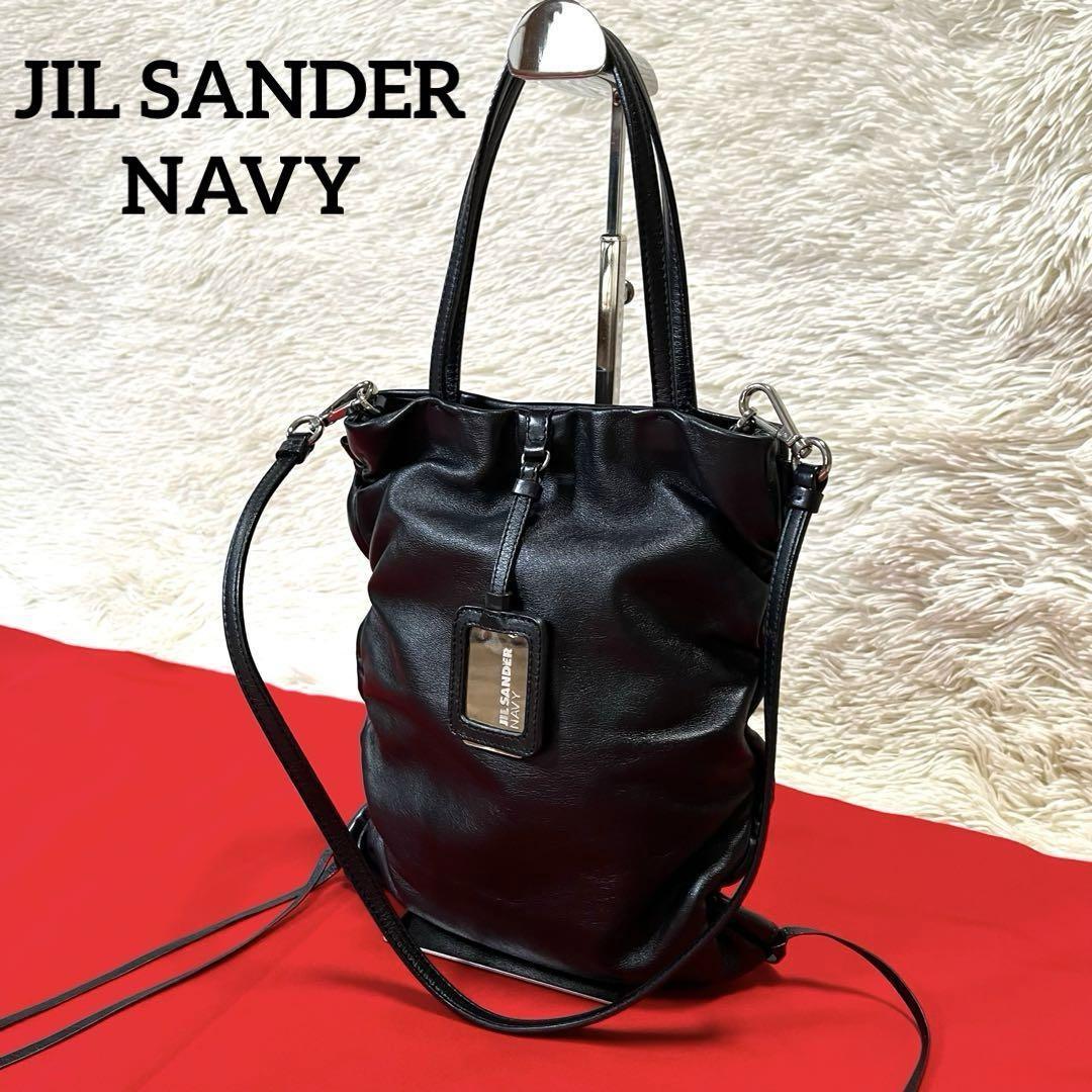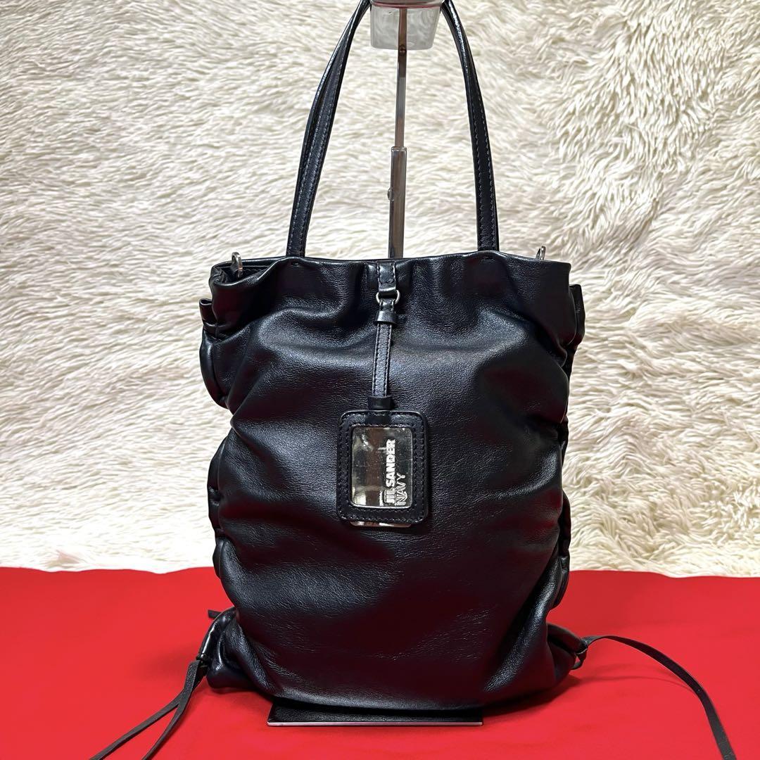 JIL SANDER NAVY ジルサンダー ネイビー ハンドバッグ トートバッグ ショルダー 変形 2WAY レザー 黒 ブラック AE メンズ レディース